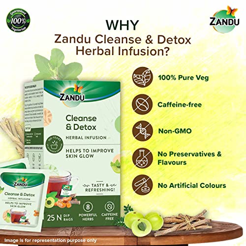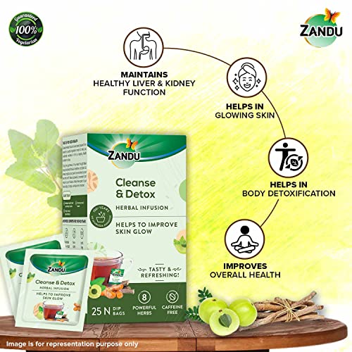 It's important to pump out all the toxins from our body & take care of our skin to make a healthy living. And one of the easiest ways to support our body & skin in its path to wellness with minimal changes in our daily routine is by infusing healthy beverages into our busy schedules. With this thought in mind we at Zandu bring you Cleanse & Detox Herbal Infusion a natural formulation enriched with the goodness of 8 powerful herbs- Amla Yastimadhu/ Mulethi Haldi Punarnava Tulasi Pippali Bhuiamlaki and Inulin Powder to maintain your skin & body health.