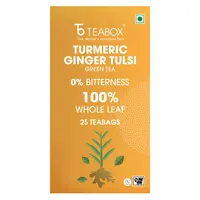 Teabox Turmeric Ginger Tulsi Green Tea Bags 25 Pieces | Flavorful & Soothing | Made with 100% Whole Leaf Natural Ginger Turmeric & Tulsi