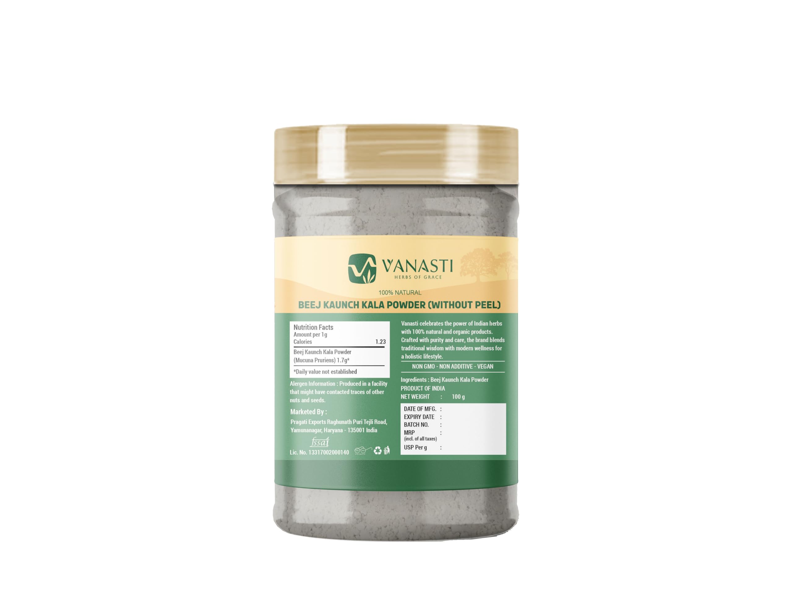 Beej Kaunch Kala Powder (without peel), made from Mucuna pruriens seeds, is a natural product valued for its rich nutrient profile, including L-dopa, proteins, amino acids, vitamins, and minerals. This powder is commonly used in traditional Ayurvedic preparations and is recognized for its unique composition and natural properties.