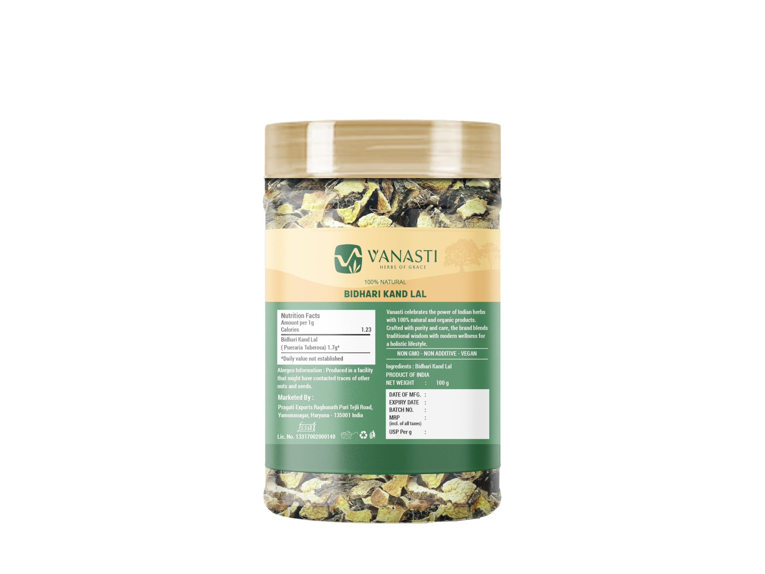 Bihari Kand Lal (also known as Bidhari Kand Lal) is a root vegetable native to India, often called Indian Kudzu. The tuber is round with a pale interior and thin brown skin. After harvesting, it is dried and ground into a soft powder with a gentle, starchy scent. Traditionally, it is added to homemade herbal blends and seasonal recipes in many households. Bihari Kand Lal is a natural source of carbohydrates and contains plant compounds called saponins, commonly found in various roots. Its use is part of local food and wellness traditions.