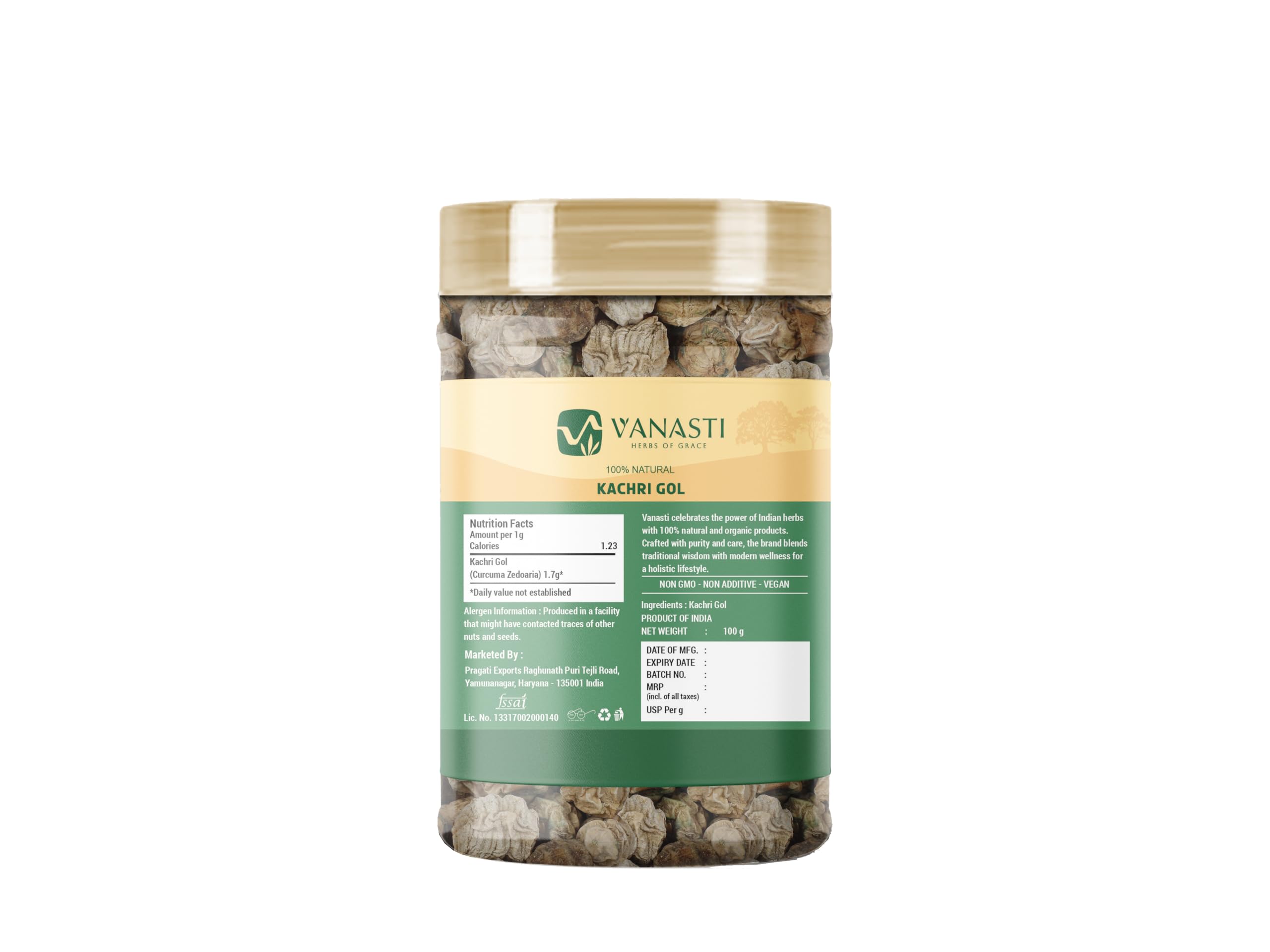 Kachri Gol (also called wild melon, Cucumis pubescens) is a small, round fruit native to the arid regions of Rajasthan and Western India. The fruit resembles a miniature watermelon with green stripes and has a mildly tangy flavor. Kachri Gol is rich in dietary fiber, vitamin C, and essential minerals such as potassium and iron. It is commonly used as a vegetable, in pickles, chutneys, and as a natural meat tenderizer in Rajasthani cuisine. Dried Kachri or its powder is valued for both flavor and nutrition.