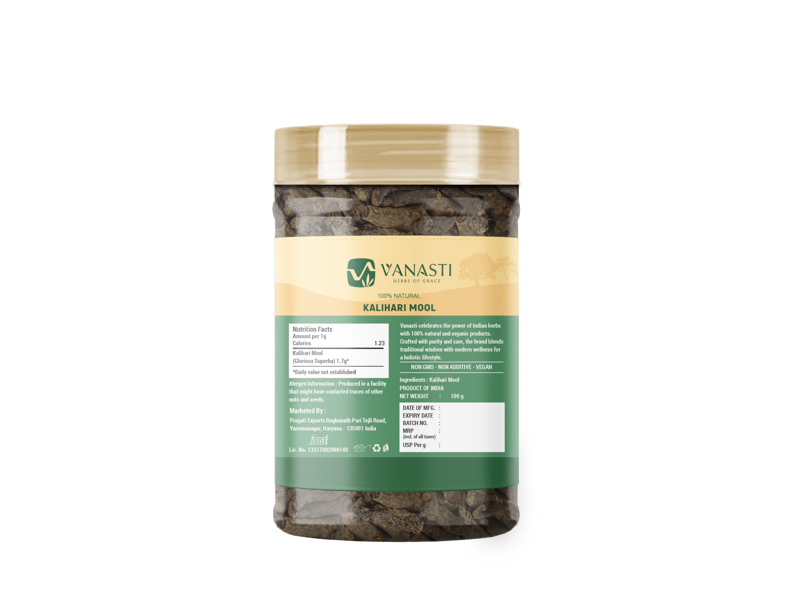 Kalihari Mool (also known as Langali) is the tuberous root of a perennial climbing plant native to Asia and Africa. The roots are firm, elongated, and pale brown, and contain plant compounds such as colchicine, flavonoids, and saponins. Kalihari Mool provides carbohydrates, fiber, and small amounts of protein. It is sometimes used as an ingredient in botanical preparations and herbal blends.