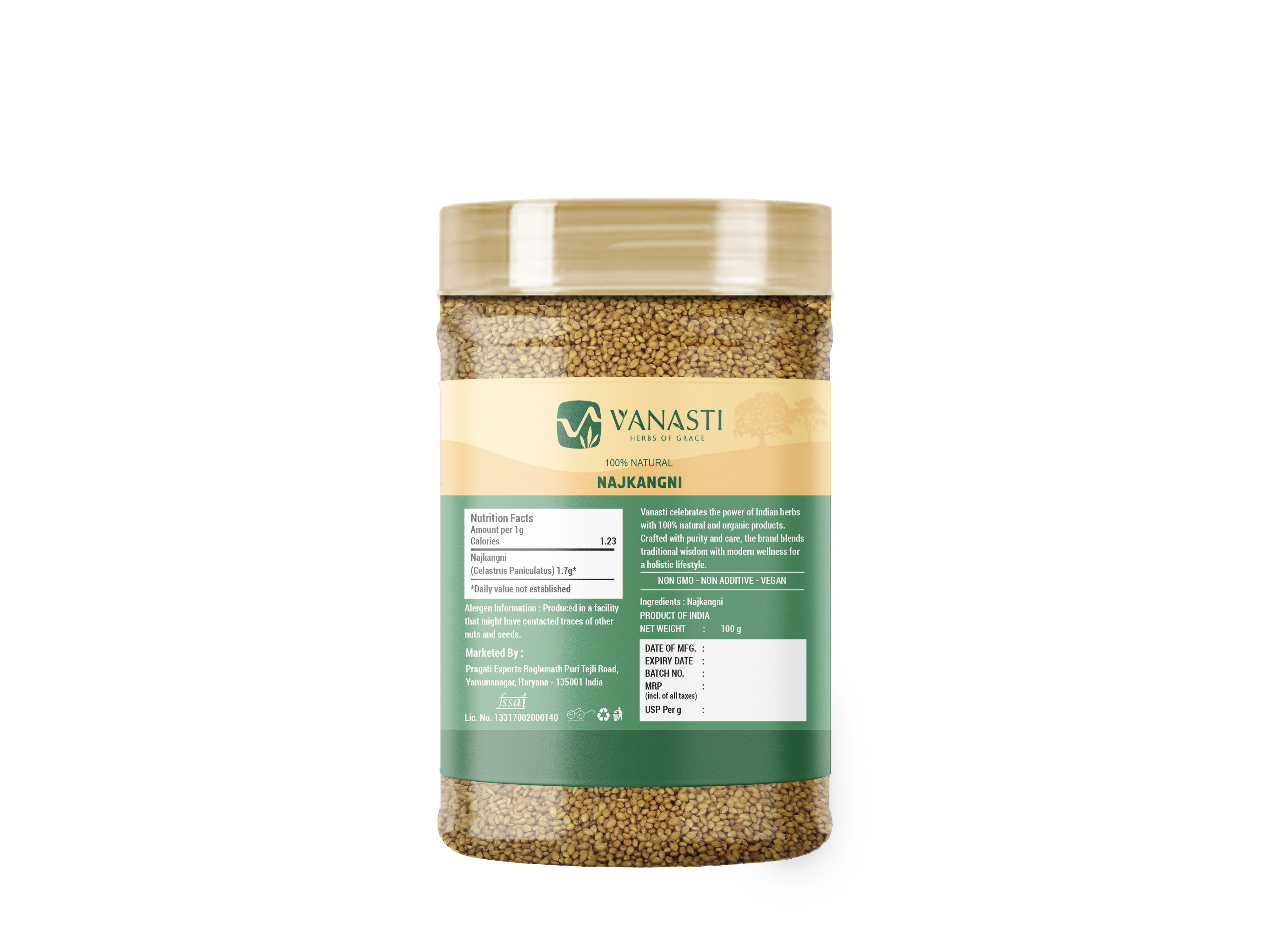 Najkangni, also known as Anajkangni, is a small ancient grain rich in plant-based protein, fiber, iron, and magnesium. It contains essential amino acids and complex carbohydrates. Commonly used in porridges and rustic meals, it offers a nutty taste and hearty texture.