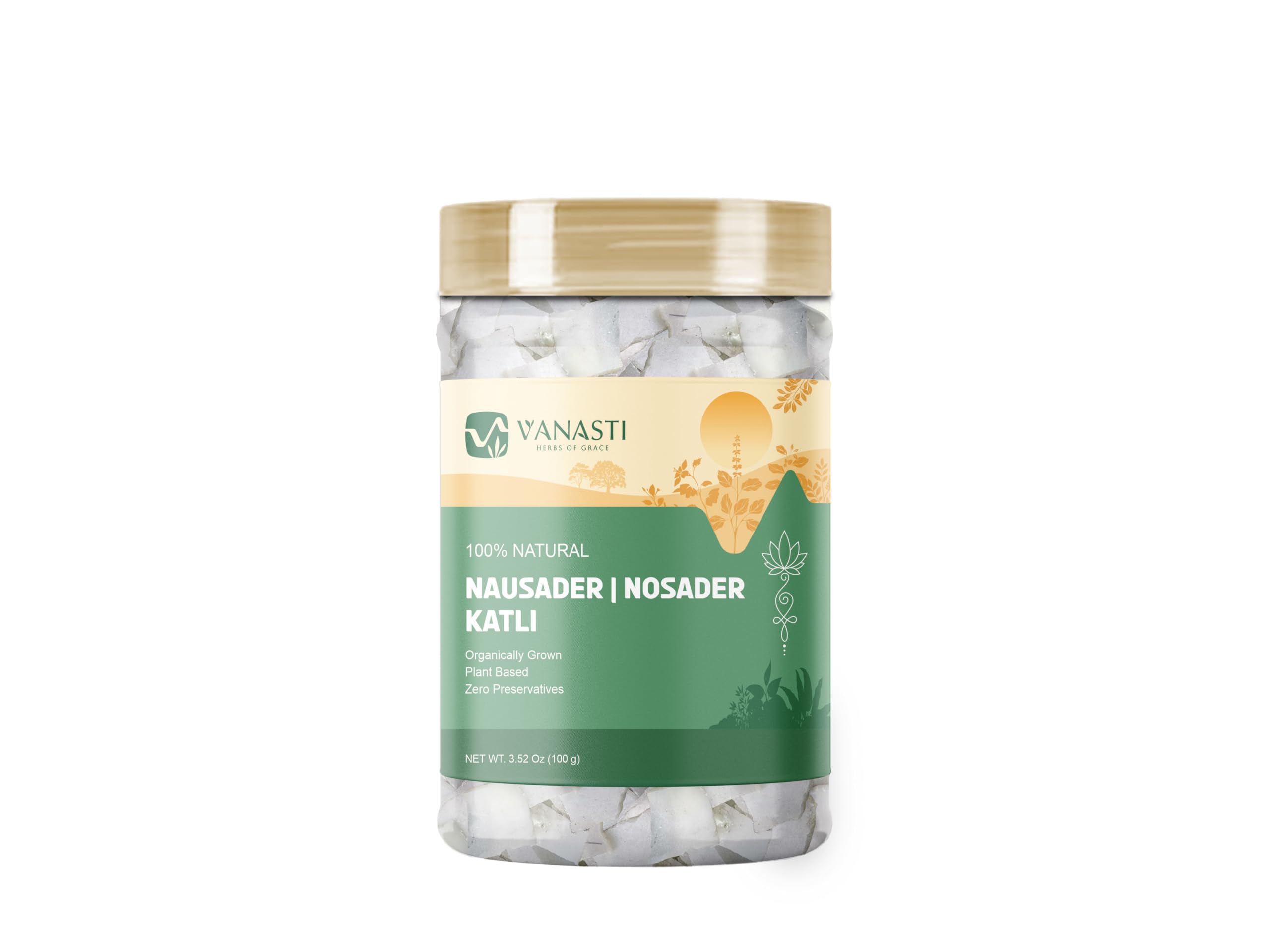Nausader Katli (Nosader Katli, Ammonium Chloride) is a white, crystalline compound used in traditional Indian cooking, confectionery, and for cleaning brassware. It has a sharp, salty taste and dissolves easily in water. Nausader Katli is also found in some classic Ayurvedic preparations.
