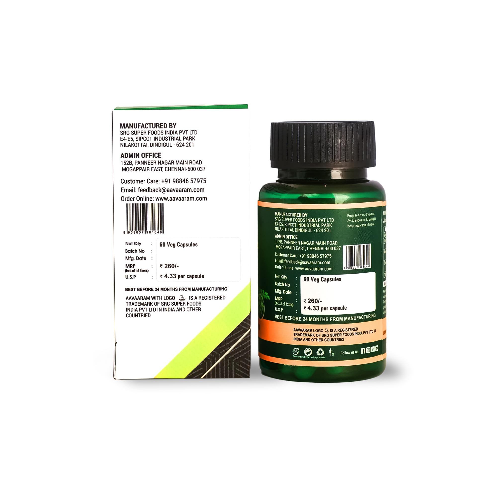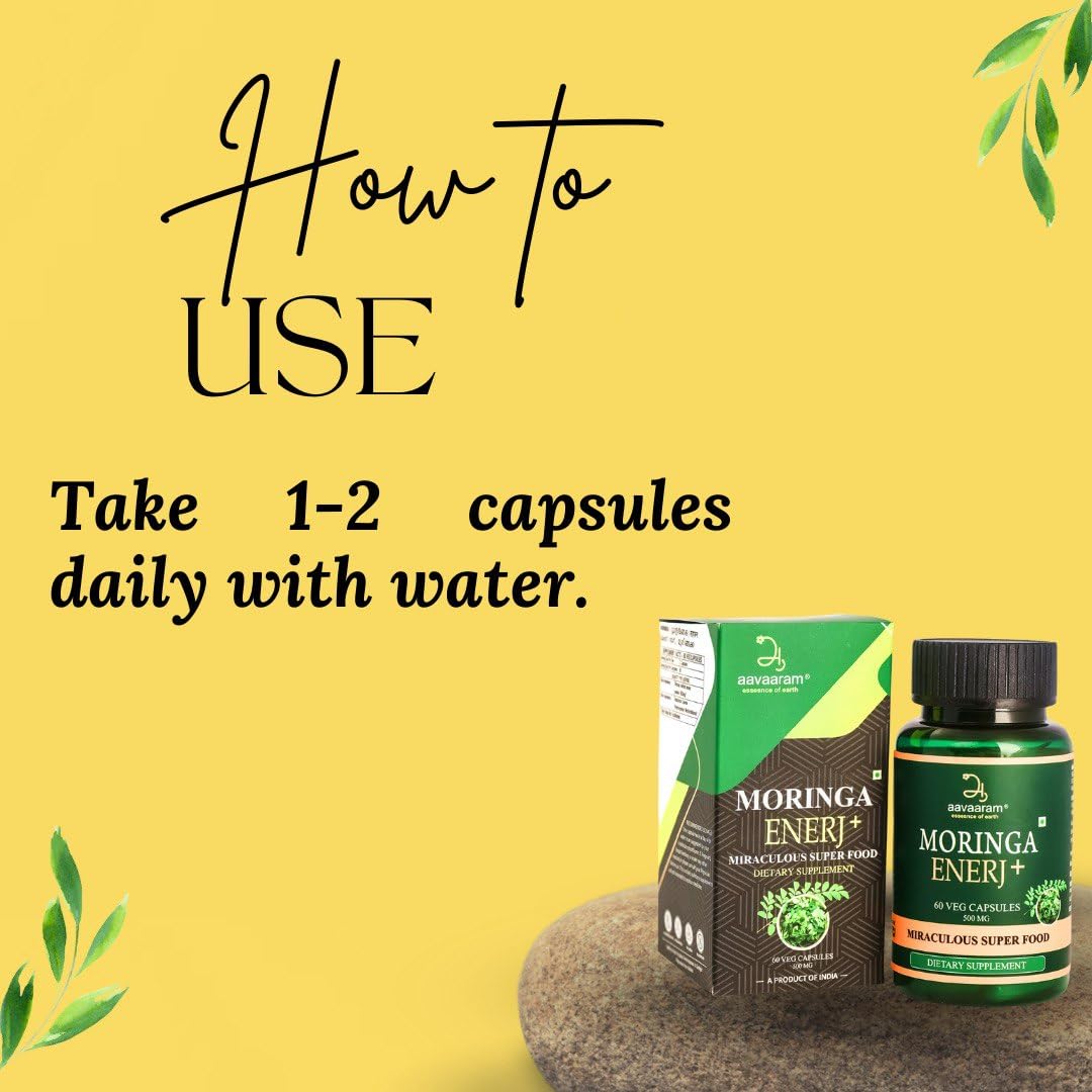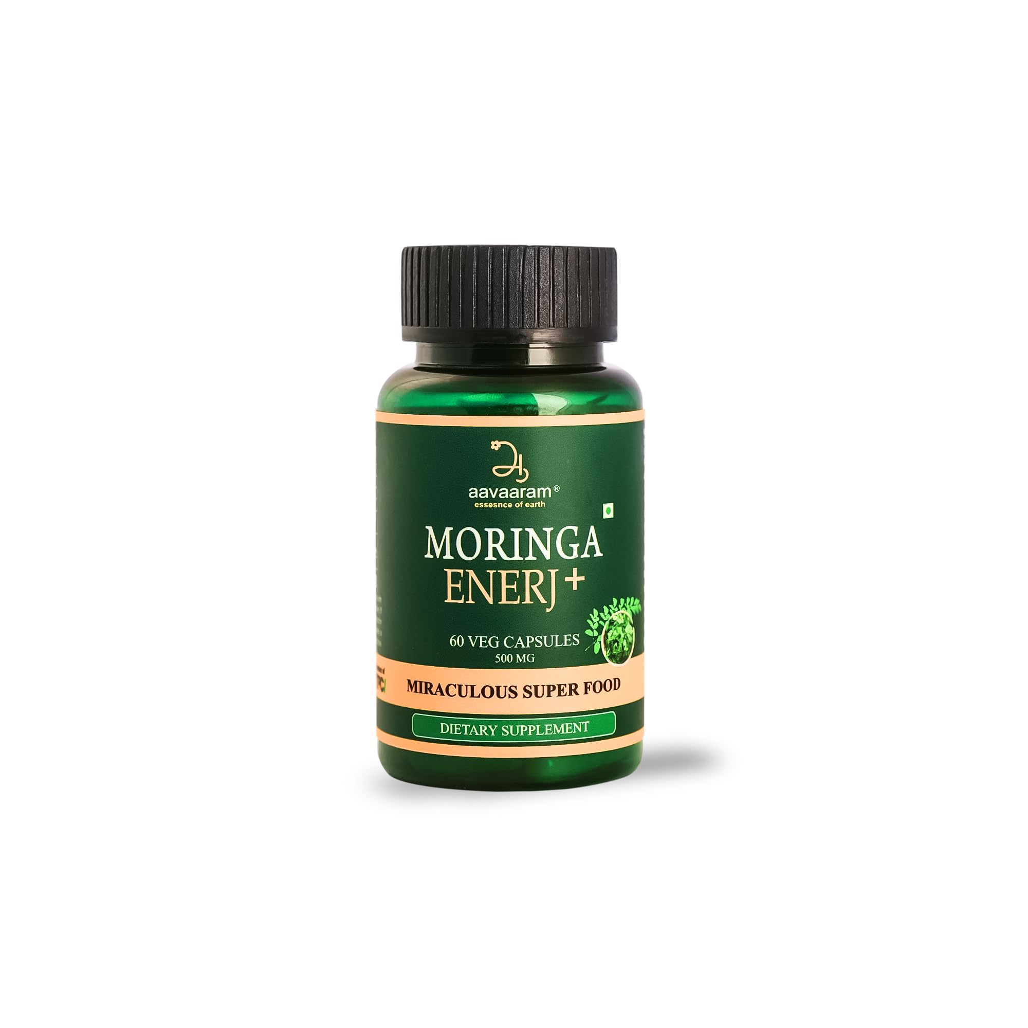 Moringa(Moringa Oleifera) a very native species of South India is a superfood due to its multifunctional properties. The leaves of Moringa helps to improve the overall wellbeing by enhancing iron absorption through improved digestion and nutritional uptake. Each capsule is exclusively packed with 40+ powerful anti-oxidants and 30+ anti-inflammatory agents.