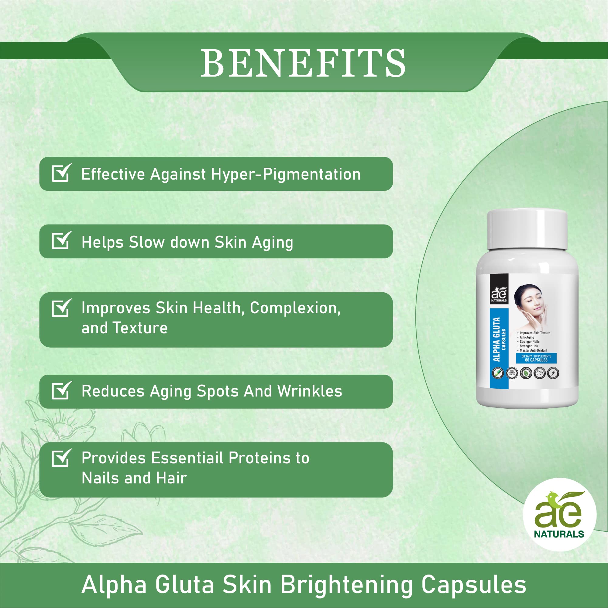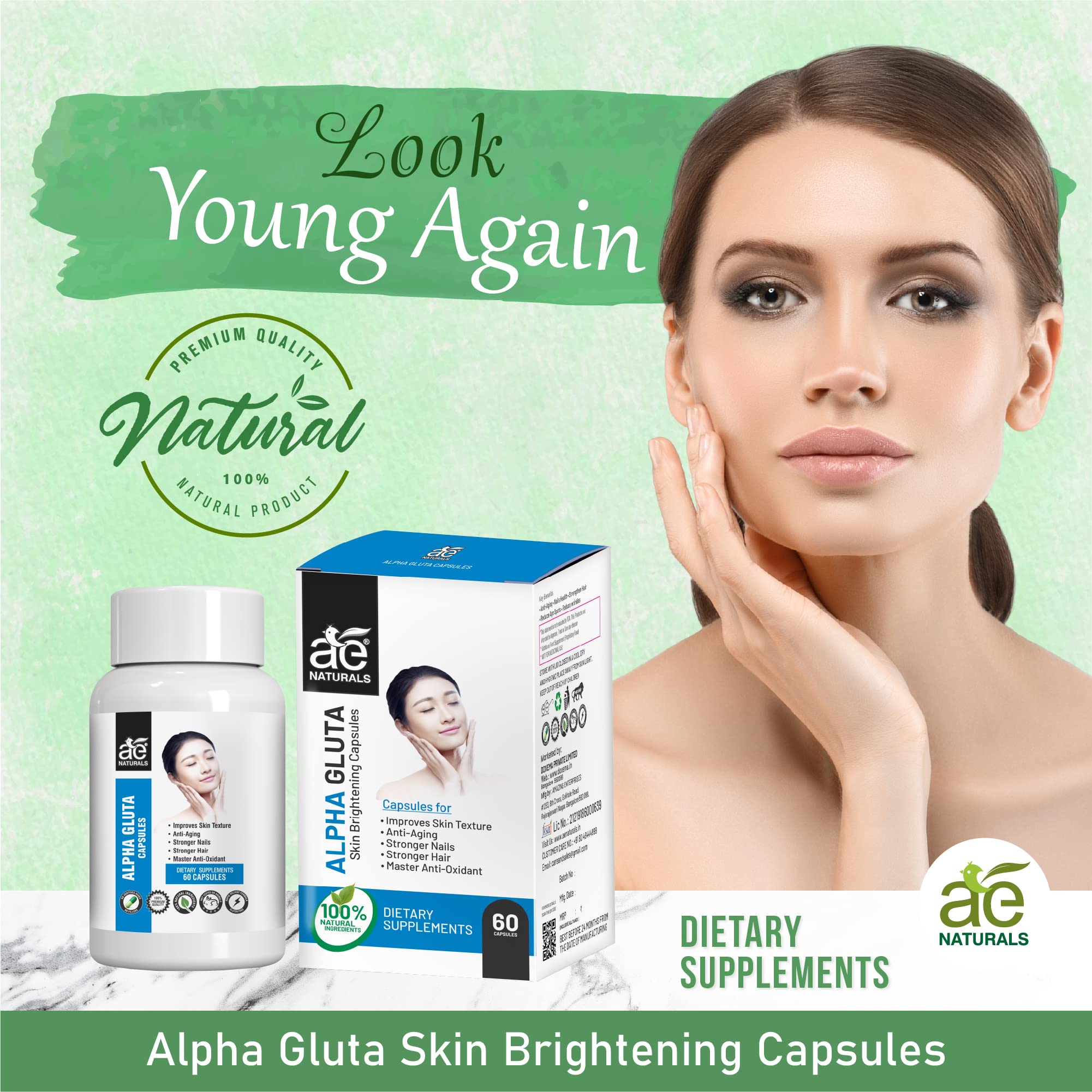 AE Naturals Alpha Gluta Skin Brightening Capsules - Pack of 60 Capsules | Nourishing Skin Care Supplement with Anti-Wrinkle Benefits