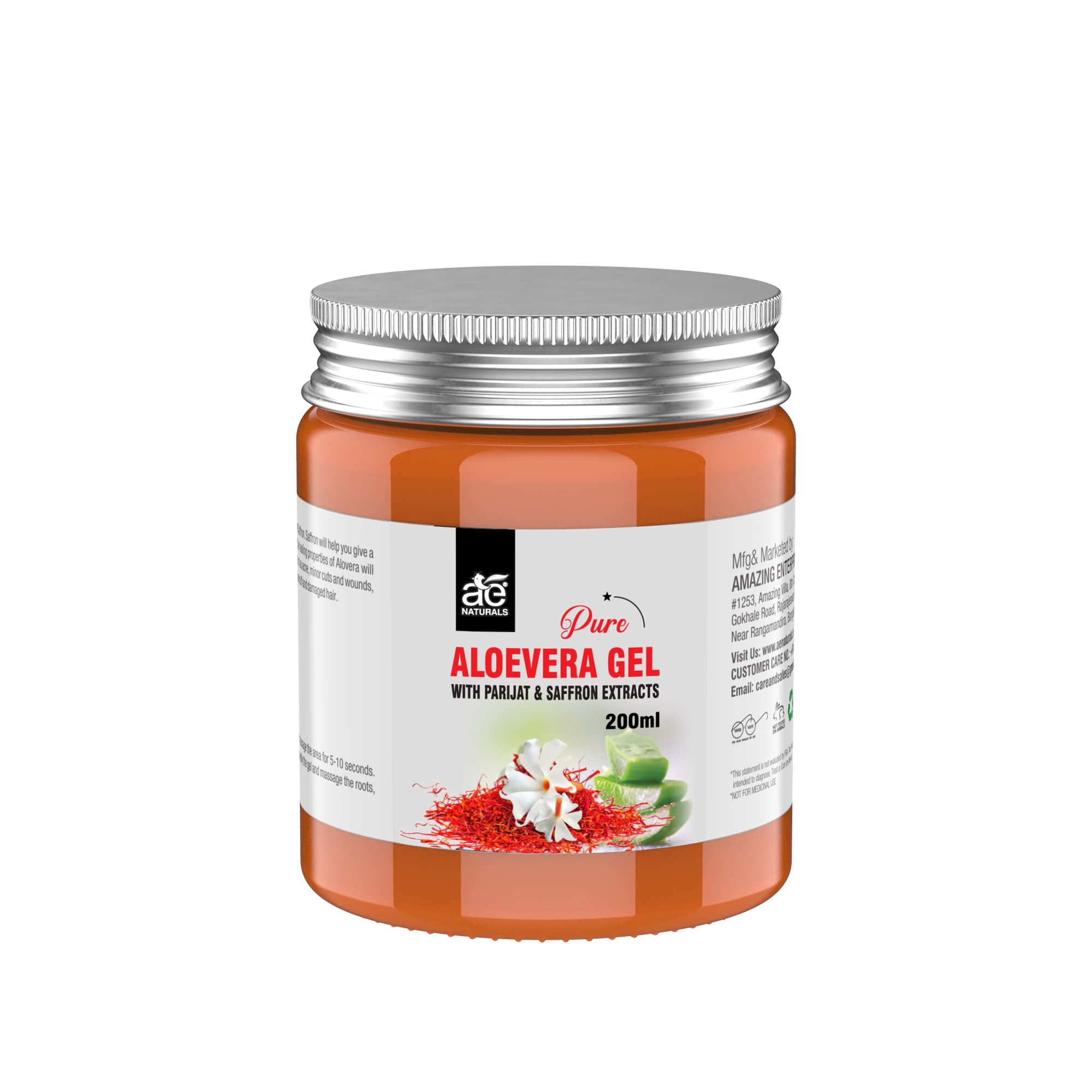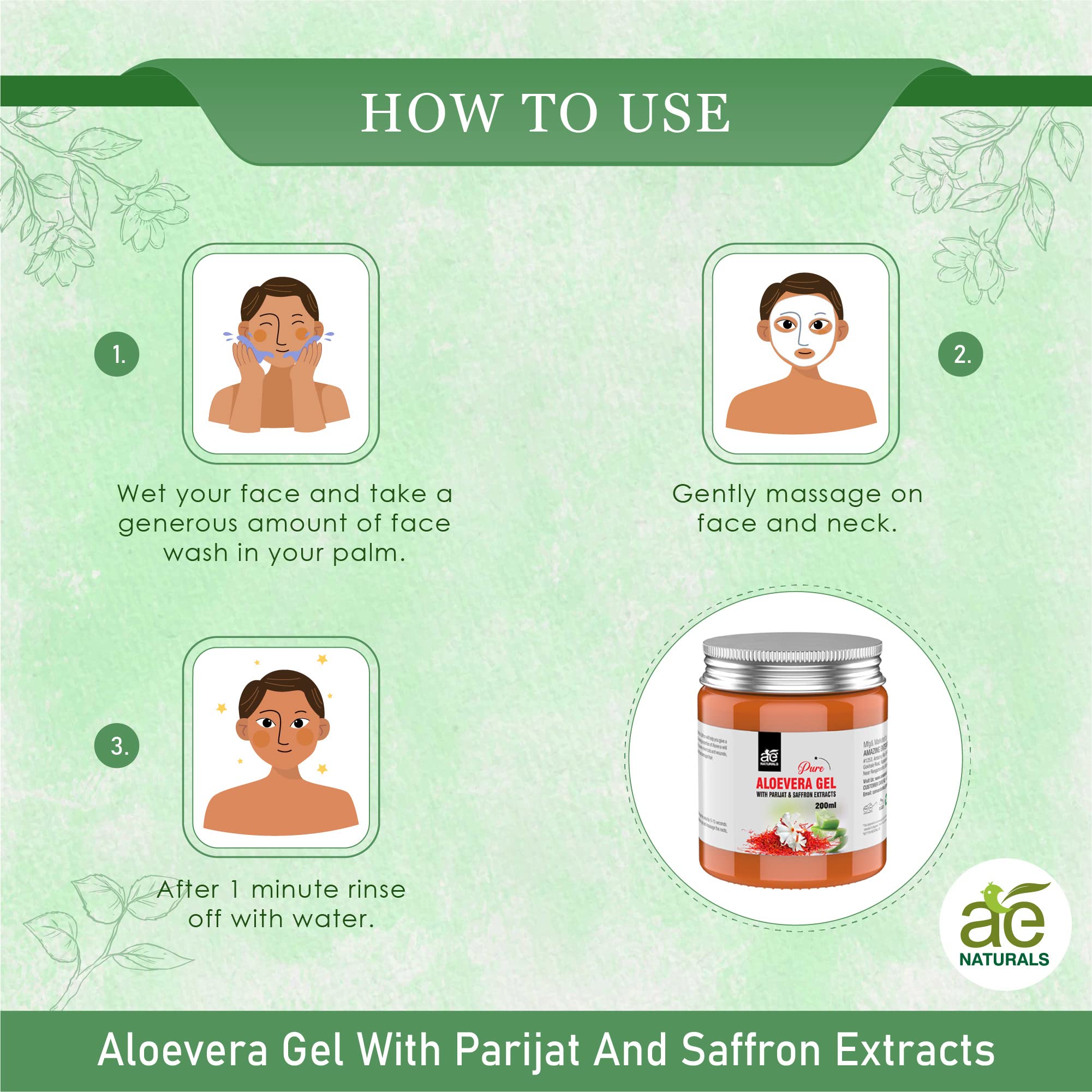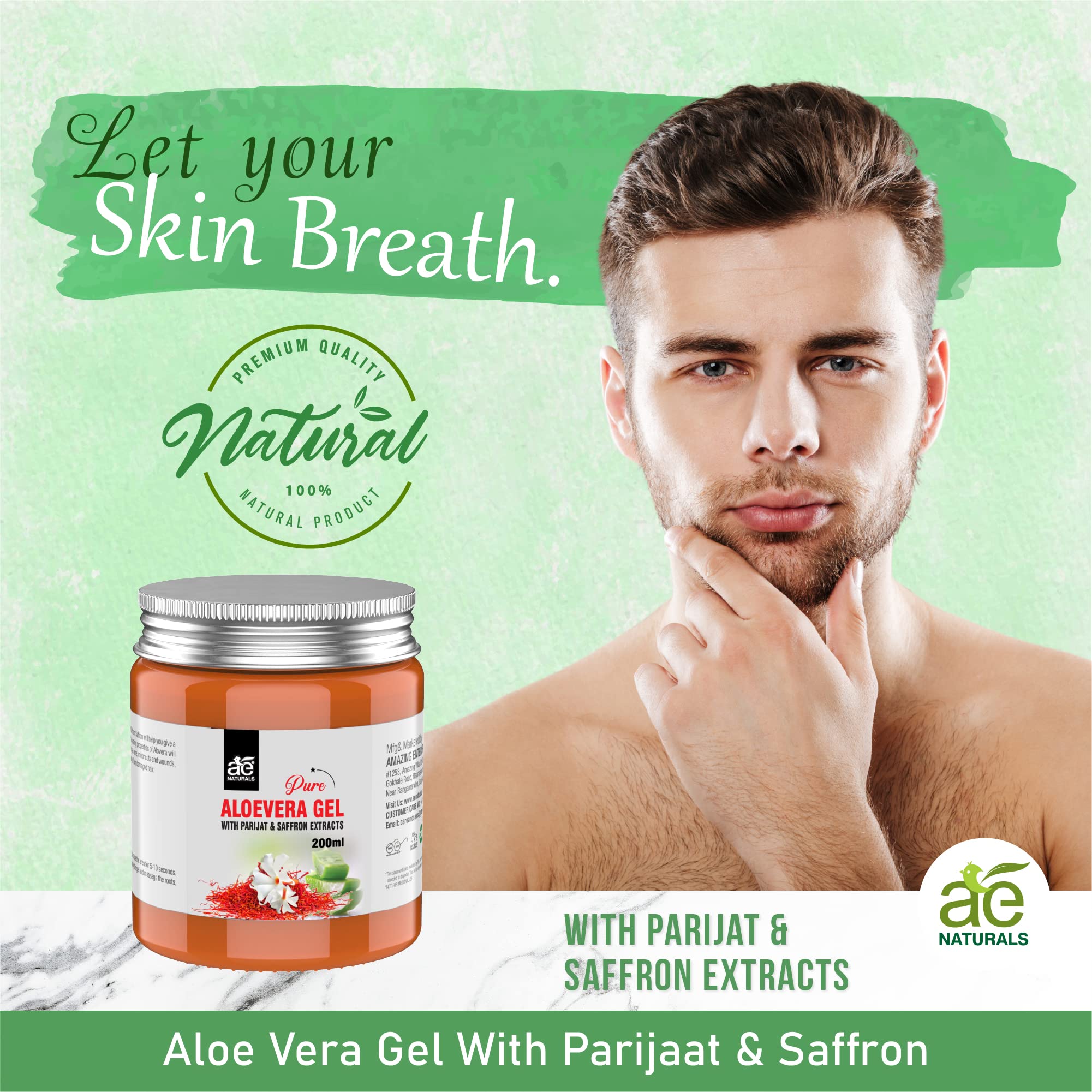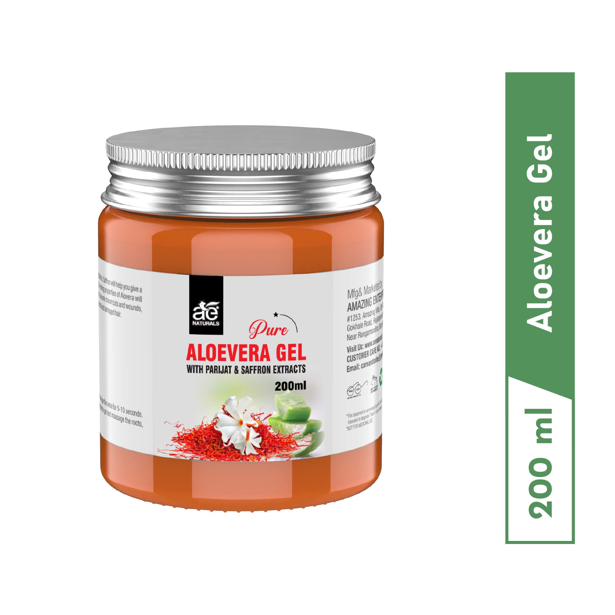 HomeHealth & PersonalDiet & NutritionHealth SupplementsAE Naturals Pure Aloe Vera Gel with Paarijat and Saffron 200ml All-in-One Gel Moisturizer for Face Body and Hair | Non-Sticky Hydrating and Transparent | Suitable for All Skin Types | Anti-Ageing Acne Prevention and Daily Nourishment (Pack of 1)