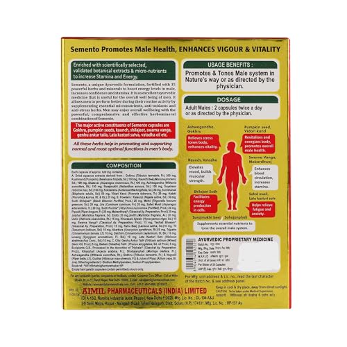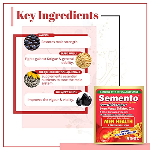Semento a unique ayurvedic formulation fortified with 35 powerful herbs and minerals to boost energy levels in male.increses confidence and stamina