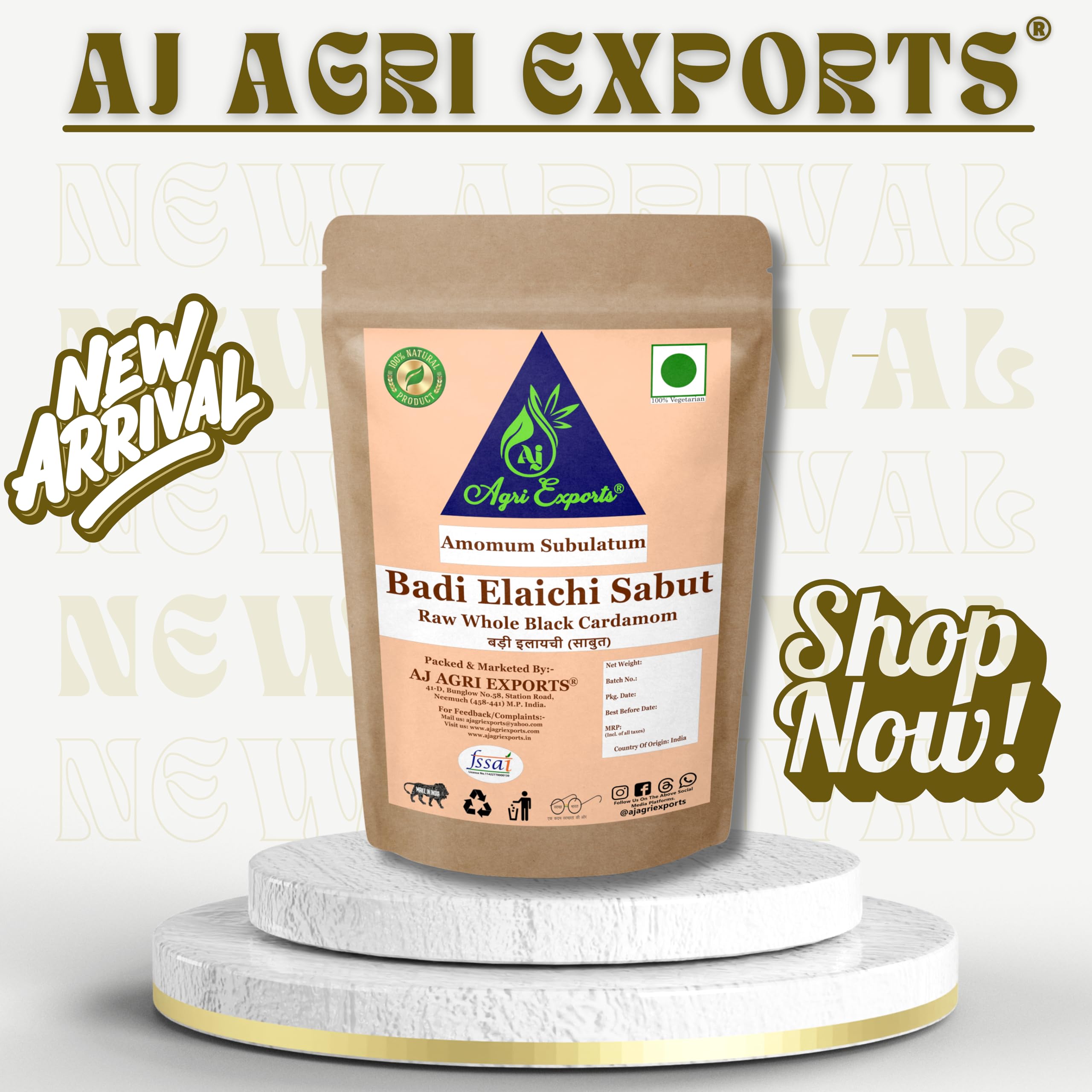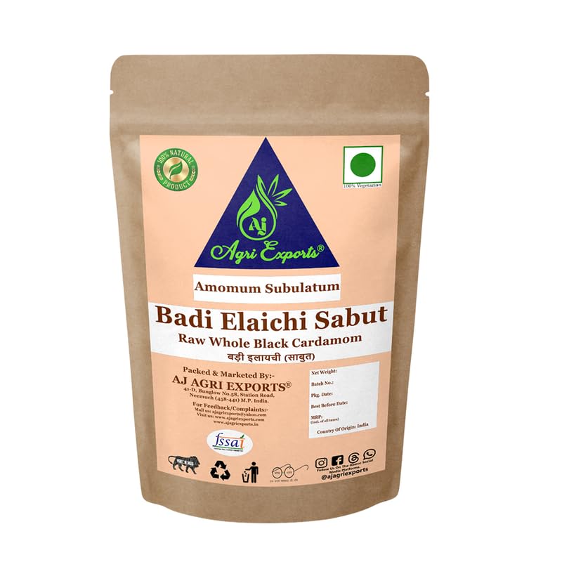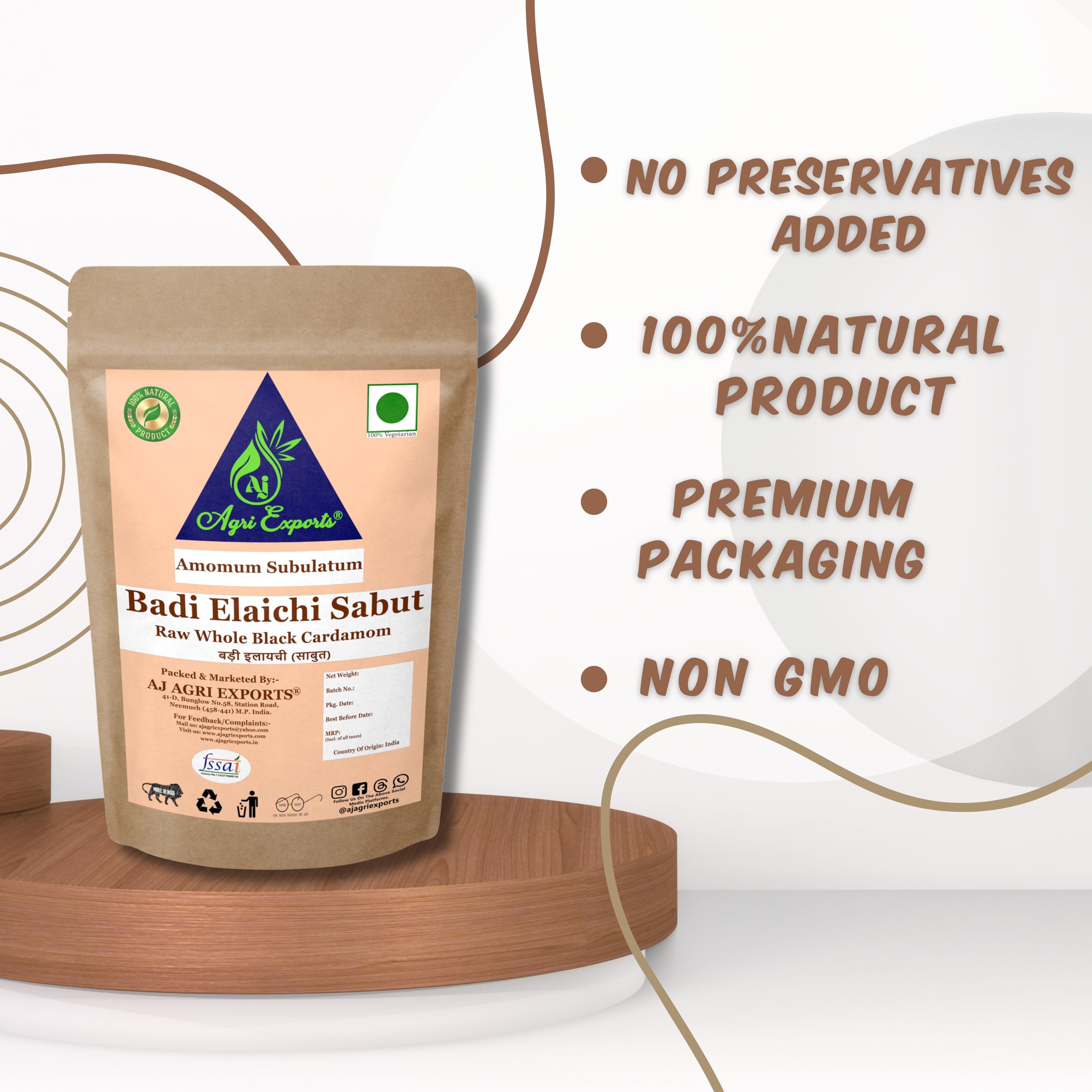 AJ AGRI EXPORTS Black Cardamom - Bold and Smoky Black Cardamom Pods for Exotic and Robust Flavor in Cooking | Non-GMO (200 Gram) (Pack of 1)