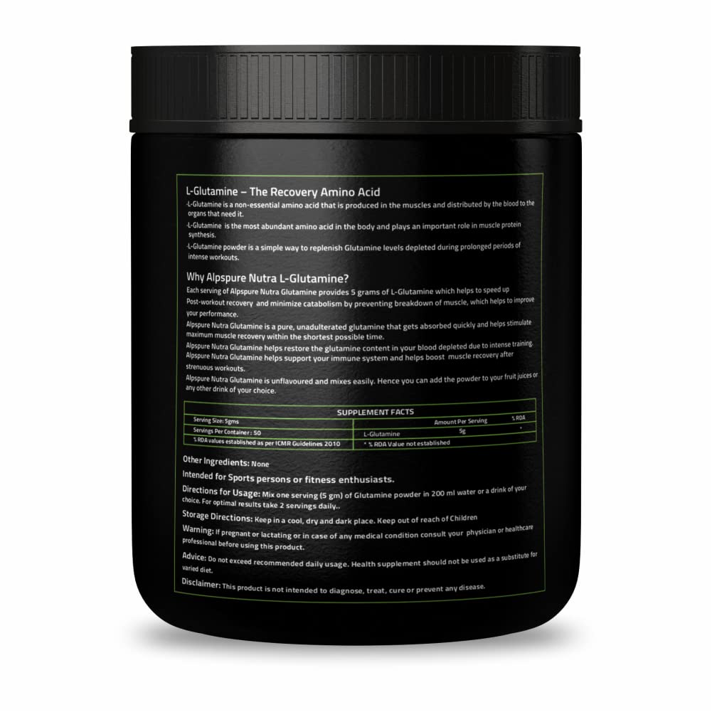 From The Trusted Nutrition Experts: Alpspure nutra Glutamine is a product of dedication to quality consistency and scientific research to make nutritional/dietary supplements of unrivalled excellence. Manufactured in a world class production unit having a