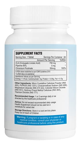 Package Contains: 1 Bottle of CLA 750mg (60 Tablets)