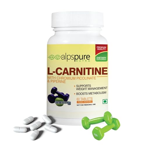 Alpspure Nutra L-Carnitine Tablets with Chromium Picolinate, Piperine | For Men & Women | Pre Workout Supplement |Supports Weight Management, Boosts Metabolism - 60 Tablets