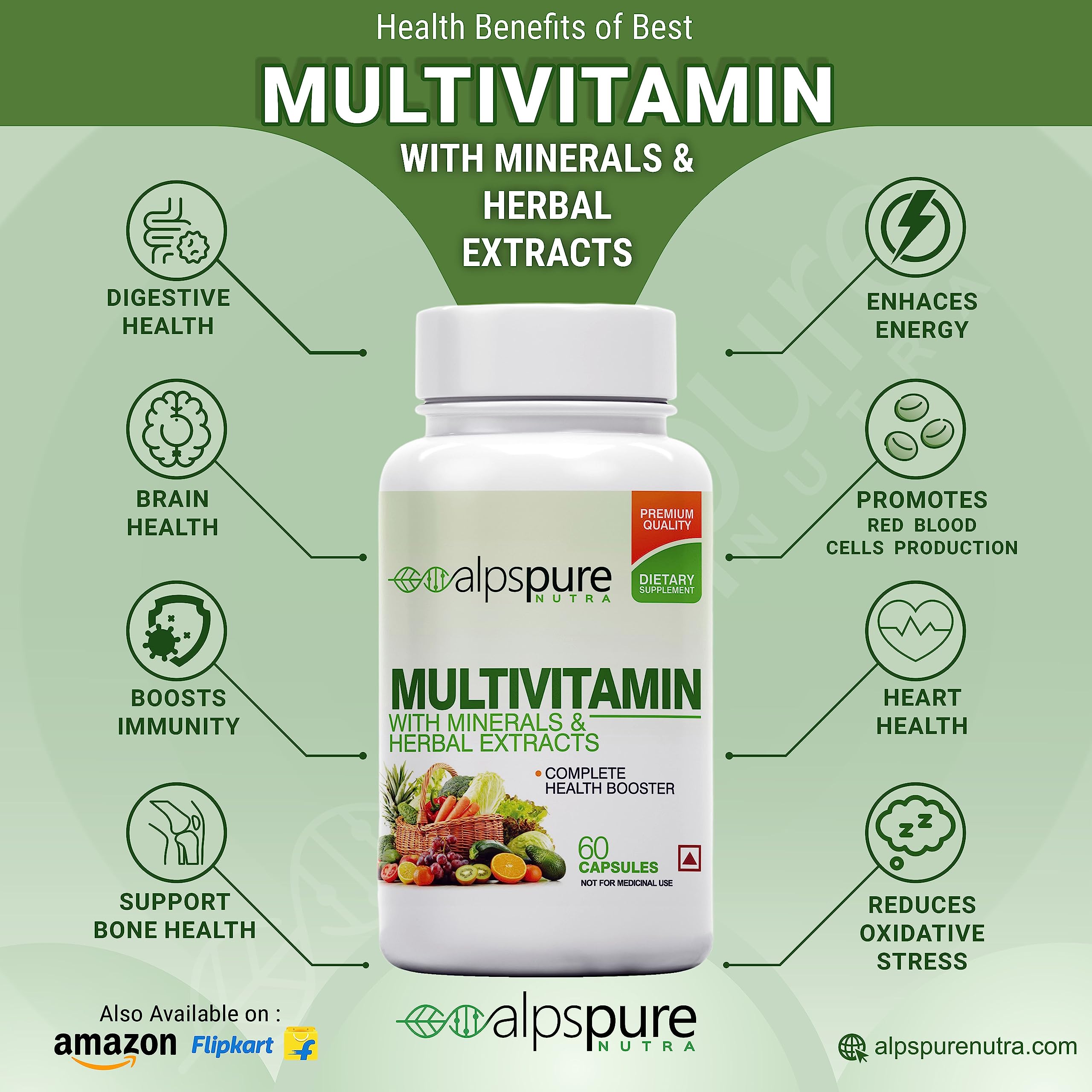 Alpspure Nutra Multivitamin 60 Capsules & Apple Cider Vinegar 90 Capsules For Boosts Energy Stamina & Immunity | Complete Health Booster with Clinically Researched Ingredients