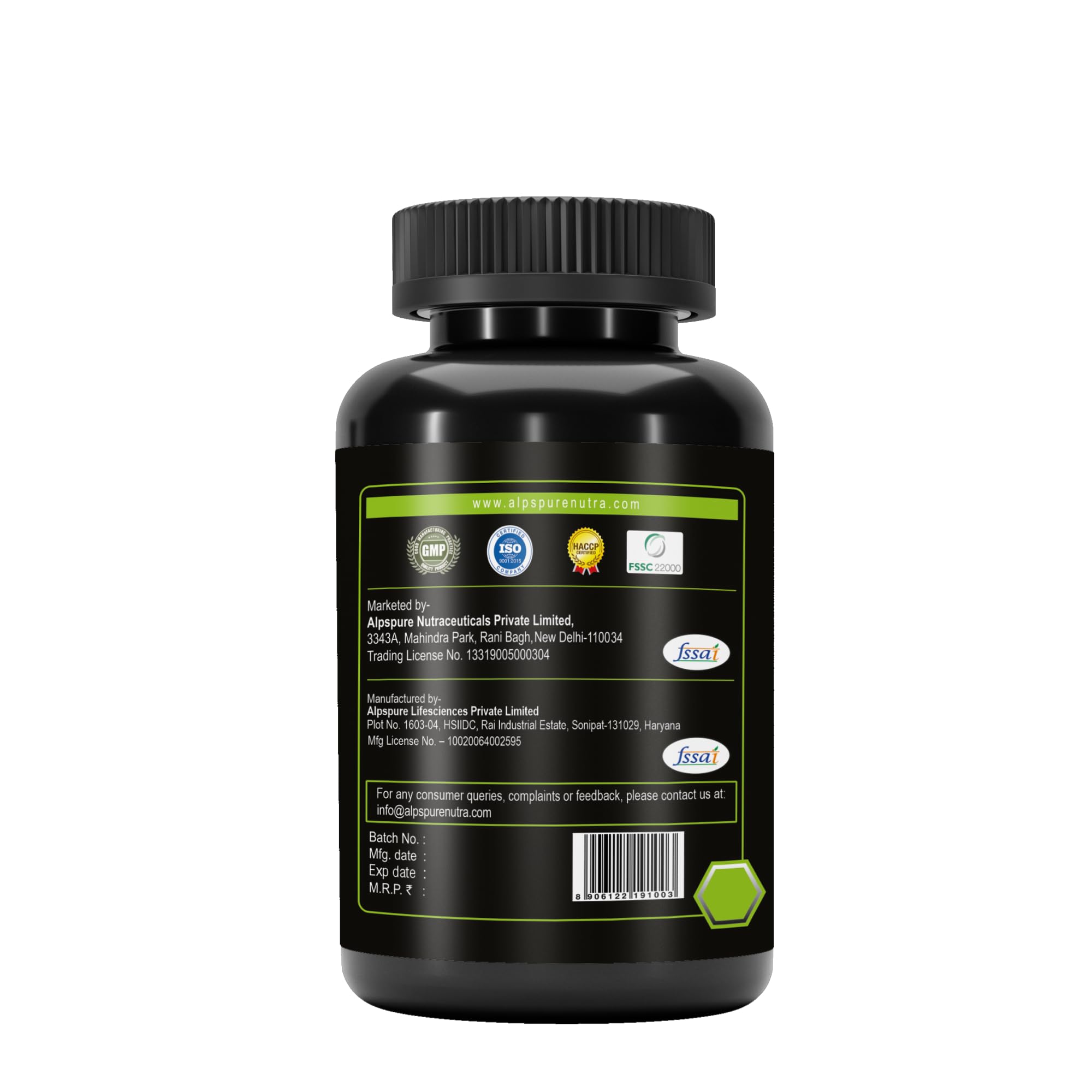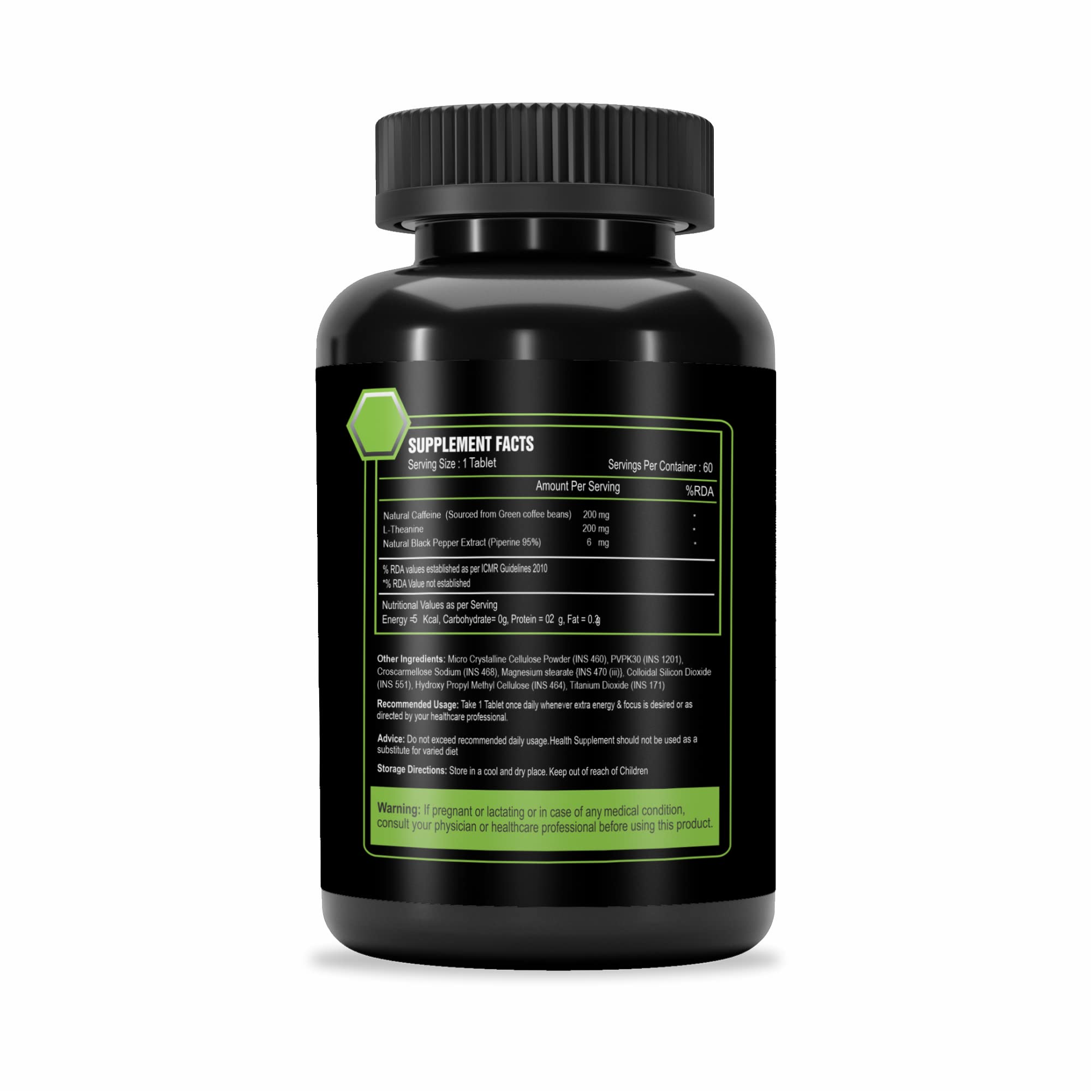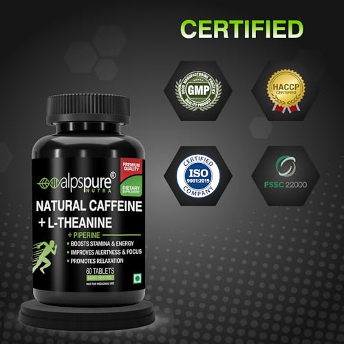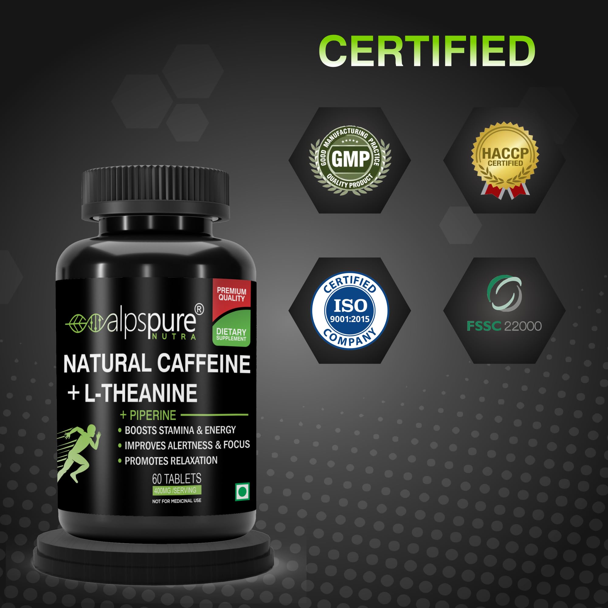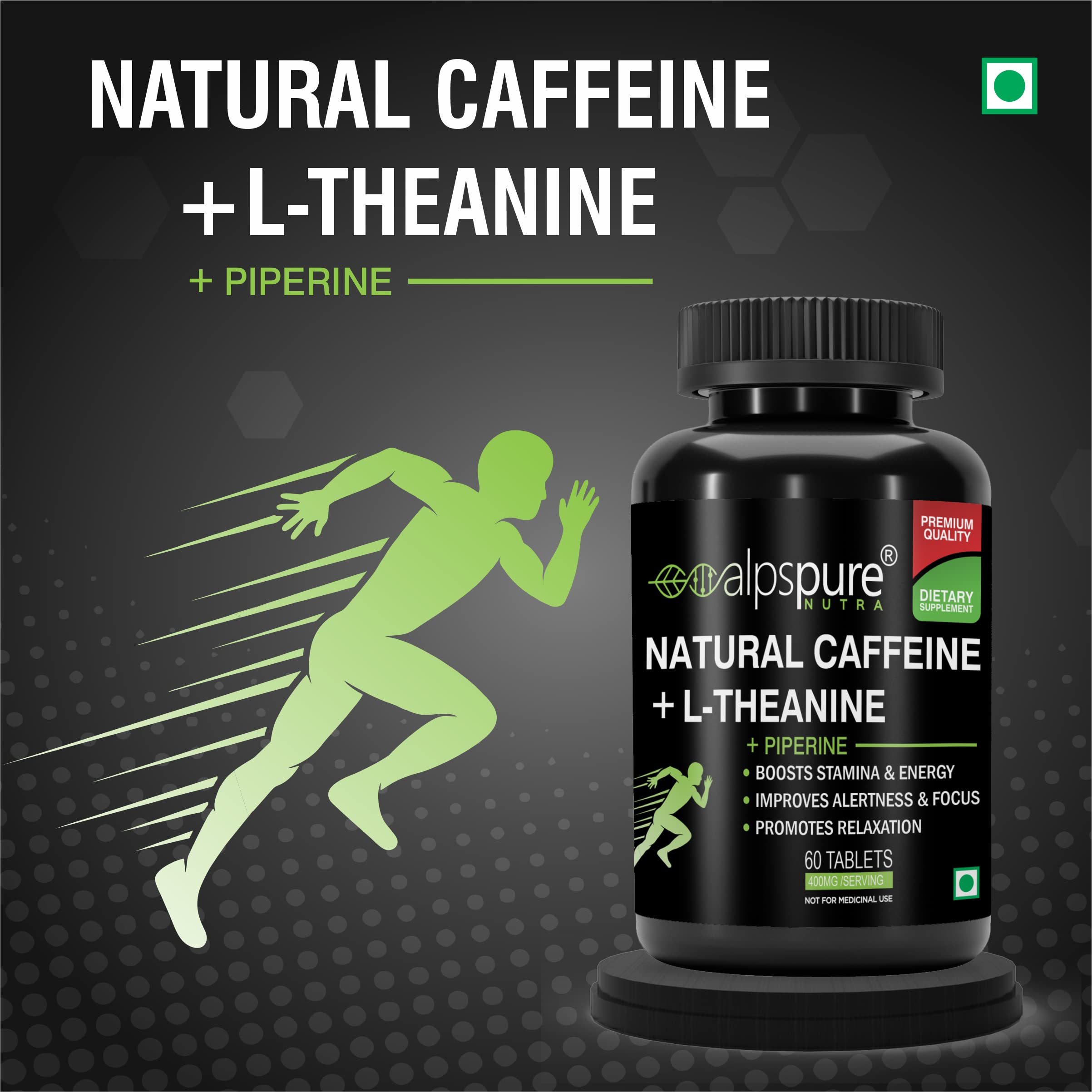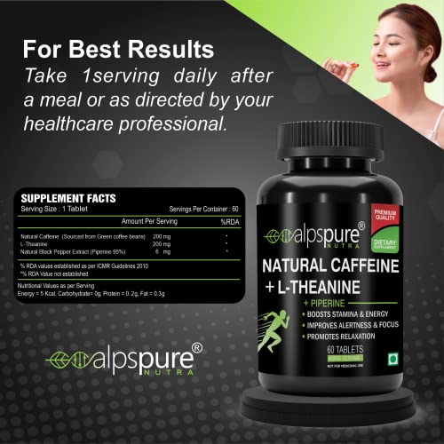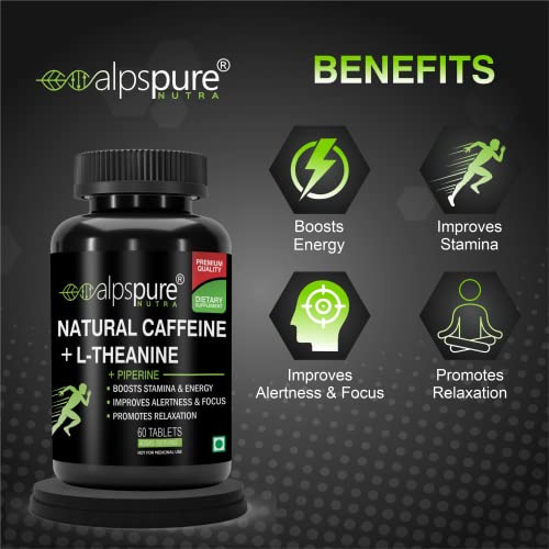 Alpspure Nutra Natural Caffeine Plus L-Theanine With Piperine | 60 Tablets | Natural Caffeine (sourced From Green Coffee Beans) | Boosts Stamina & Energy
