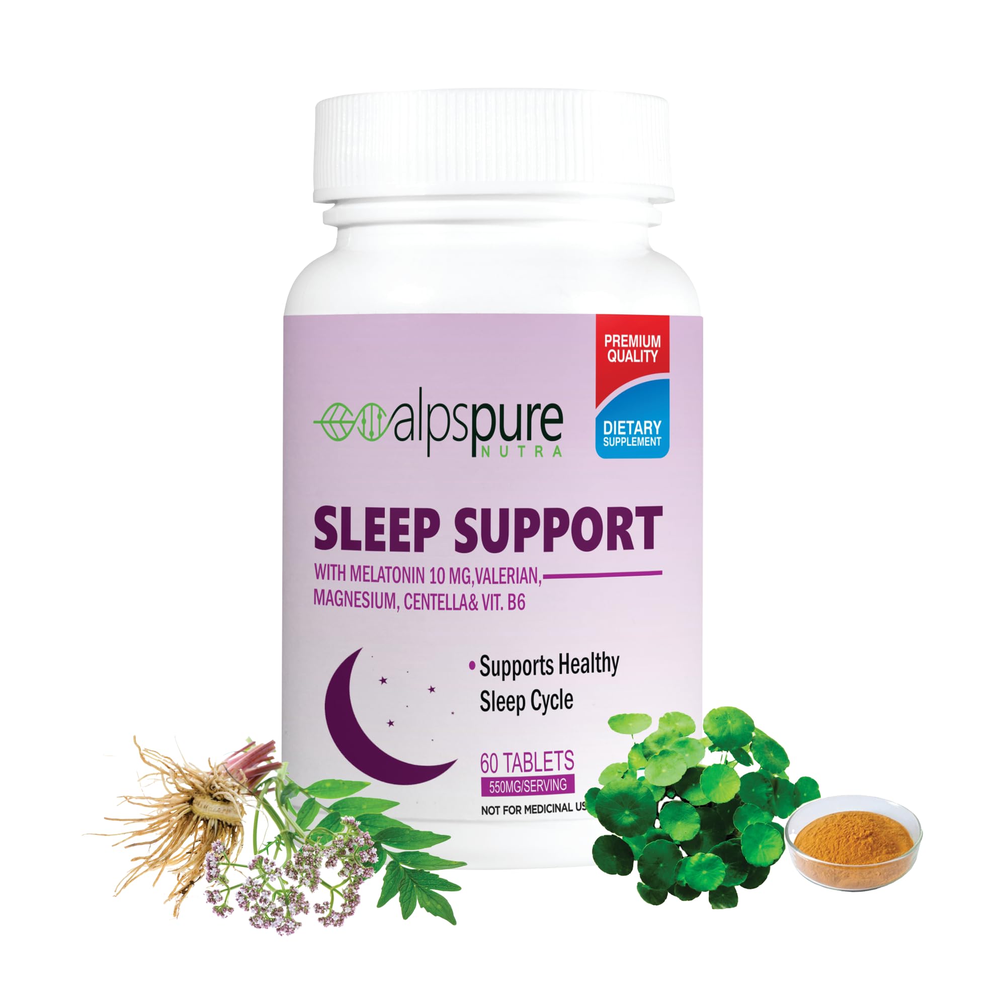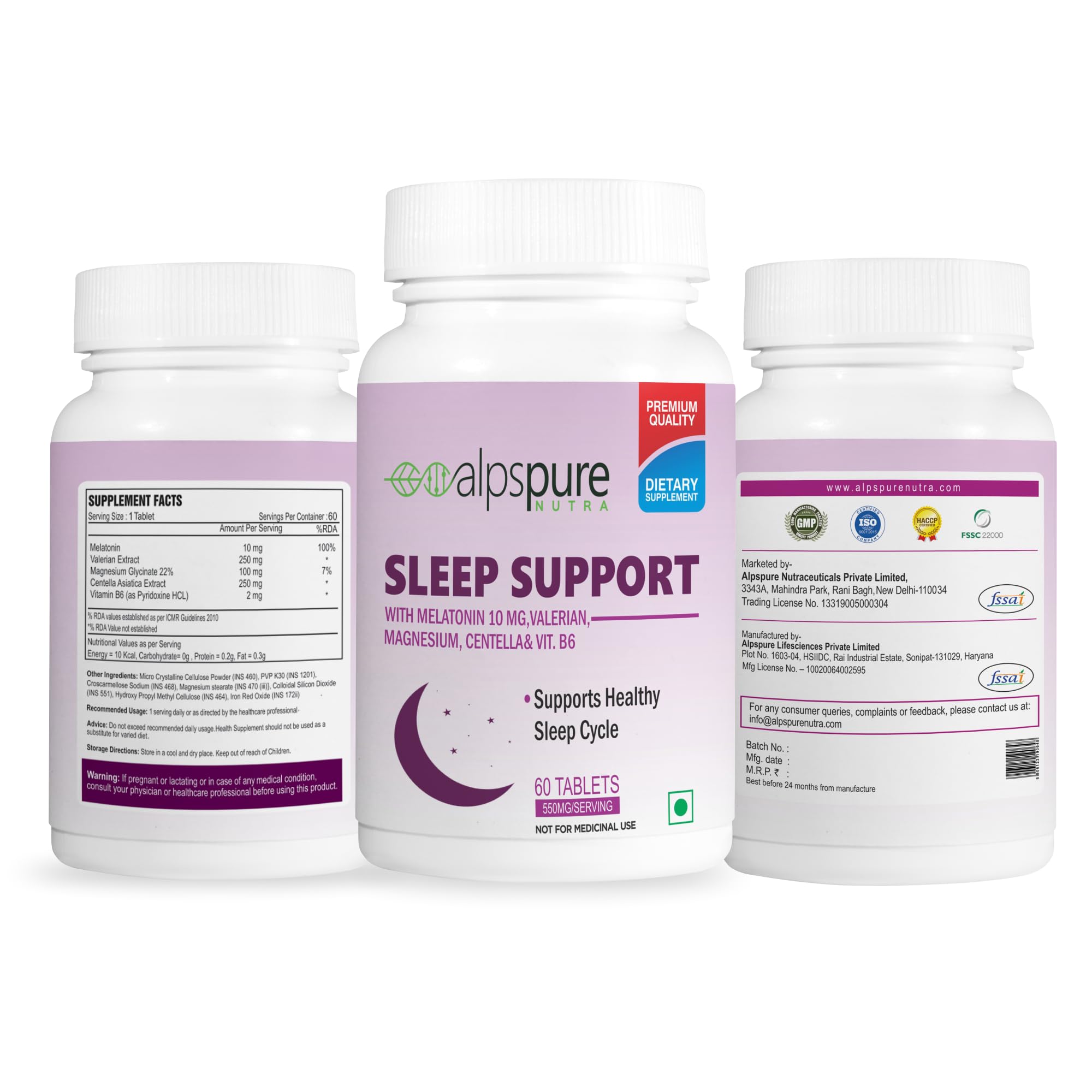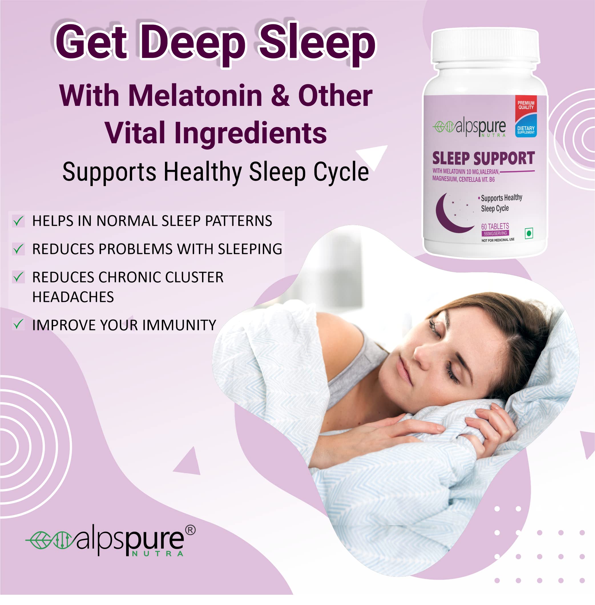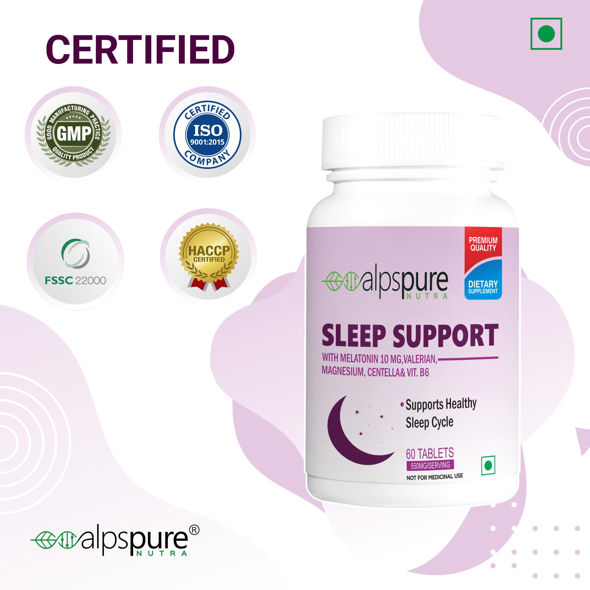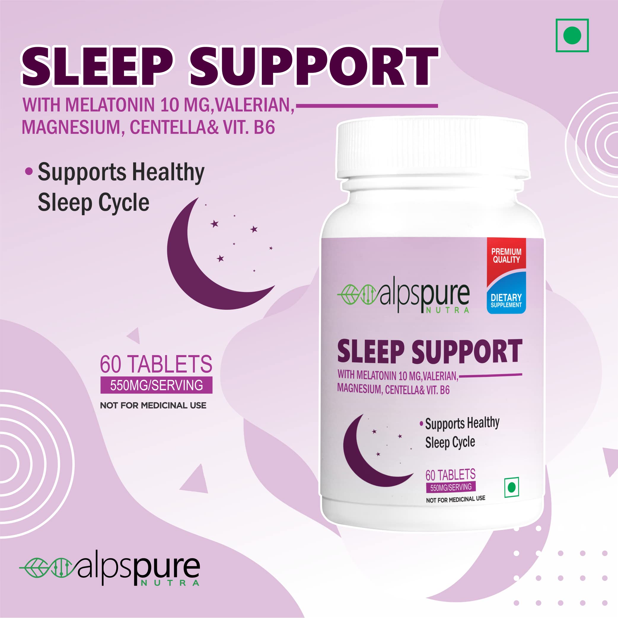 Alpspure Nutra Sleep Support Supplement (60 Tablets) with Melatonin valerian Magnesium centella & vitamin B6 |for Better Sleep |for Men and women |PACK OF-1