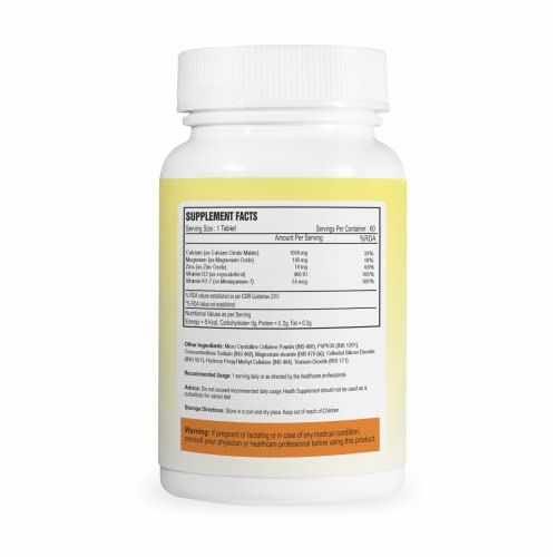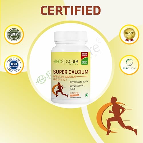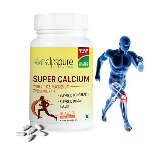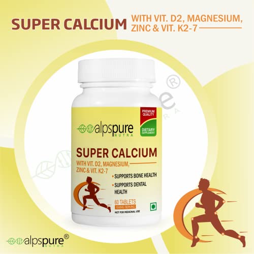 HomeHealth & PersonalDiet & NutritionHealth SupplementsAlpspure Nutra Super Calcium with Vitamin-D2, Magnesium, Zinc & Vitamin-K2-7 (60 Veg Tablets) | Bone & Joints Support Supplement | Supports Dental Health | Calcium Supplement for Men & Women