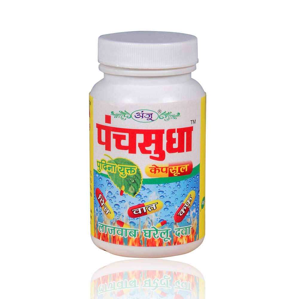 Derived from essence of Anethum graveolens (Oil Anethi) CloveThymol (2-isopropyl-5-methylphenol)Camphor (C10H160) and Menthol Panchsudha is an oral medicine that comes in liquid pack as well as handy capsule pack. It is an effective household remedy for day-to-day ailments. Due to its strong and effective formula with no side effects Panchsudha works as first aid and helps in keeping away multiple disorders sprouting from consumption of contaminated water foul food exposure to infection and even exertion of over work or travel. Indications: Acidity Colic Pain Loose Motion Vomiting Gastric Trouble Indigestion Overeating Burps Nausea Gas Sunstroke Travel Sickness Seasonal Fever Common Cold