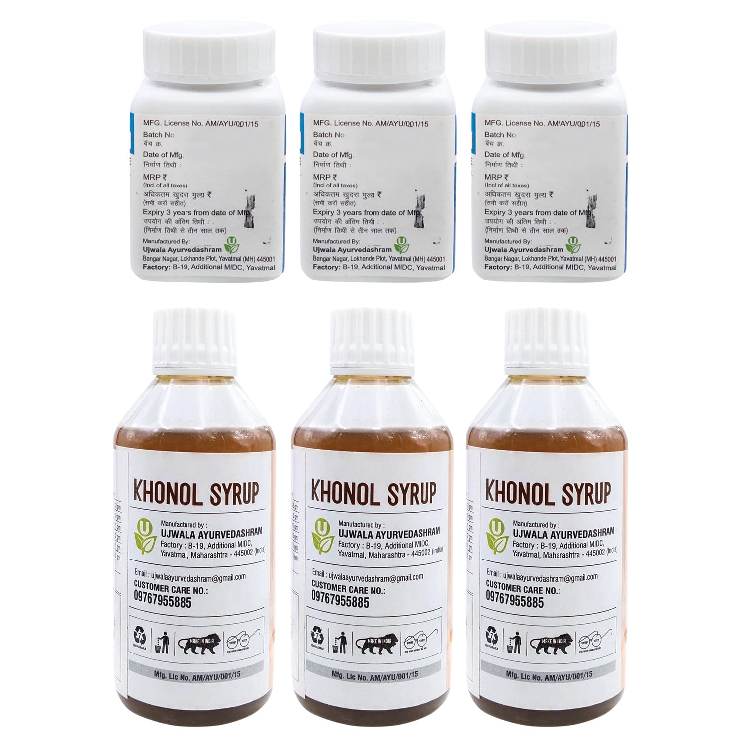 Asthacon Capsule And Khonol Syrup One Month Kit For Asthama Dry Cough Whopping Cough And Cold Bronchities And Shortness In Breath (6 intem in the set)