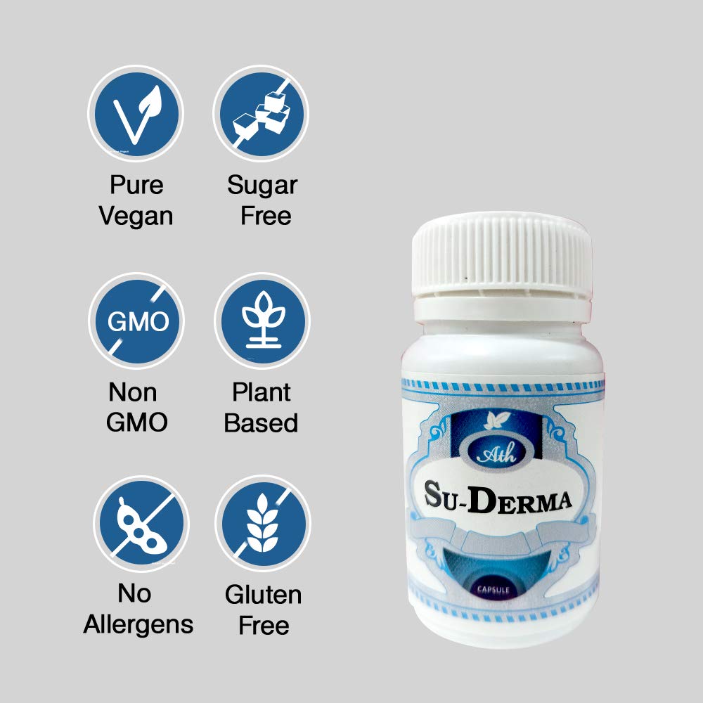 Ath Suderma Capsules Natural Treatment for all Skin Problems/Natural Supplements With Properties Of Natural Herbs For All Skin Types (1 Month Pack 3 Bottles 180 Capsules)