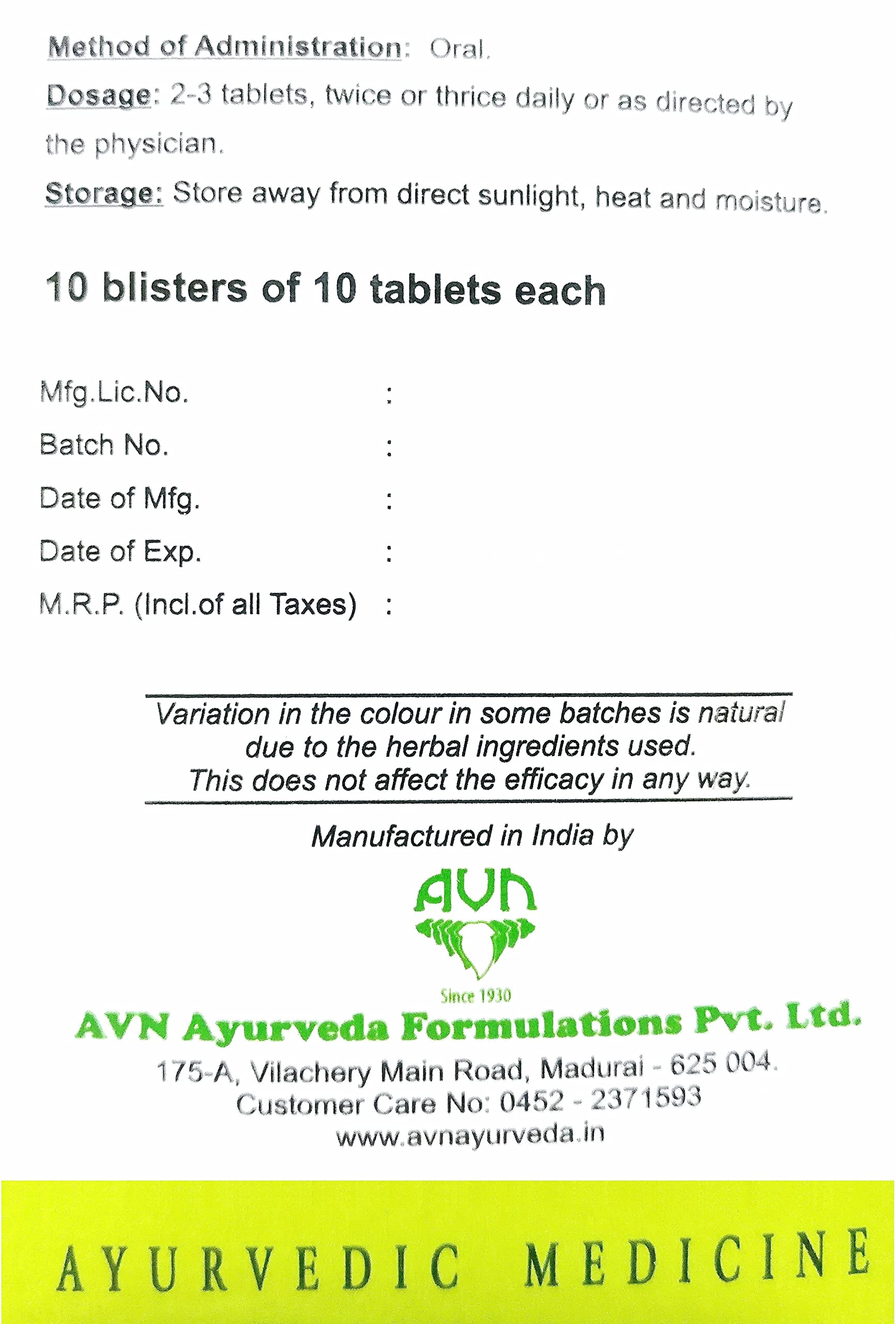 AVN Dhanwantaram Kashayam Tablets (Pack of 1) (100 Tablets)