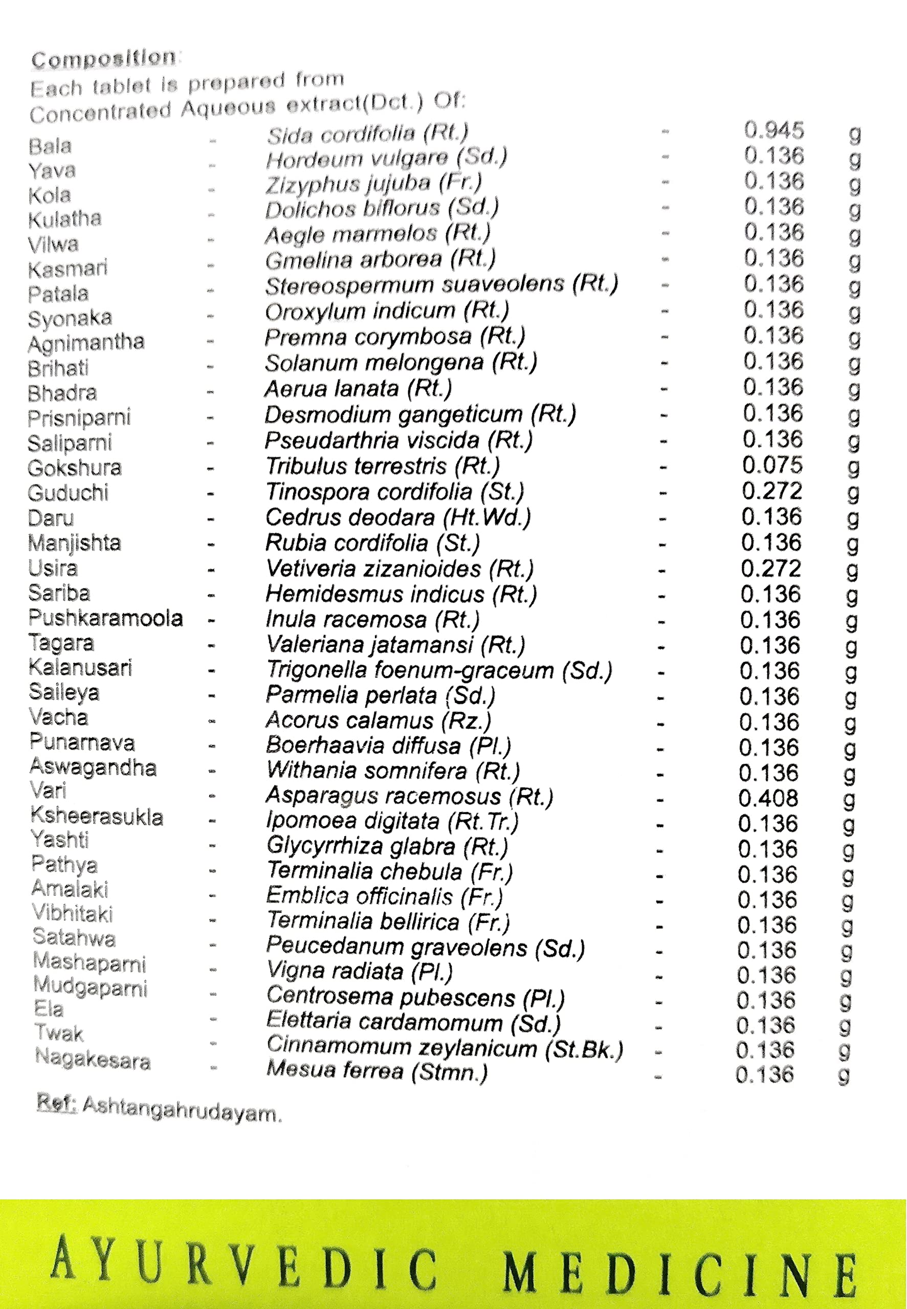Dosage: 2-3 Tablets twice or thrice daily or as directed by a physician. Warnings: If you are pregnant nursing taking any medication or have a medical condition please consult your healthcare practitioner before taking any dietary supplement. Keep out of
