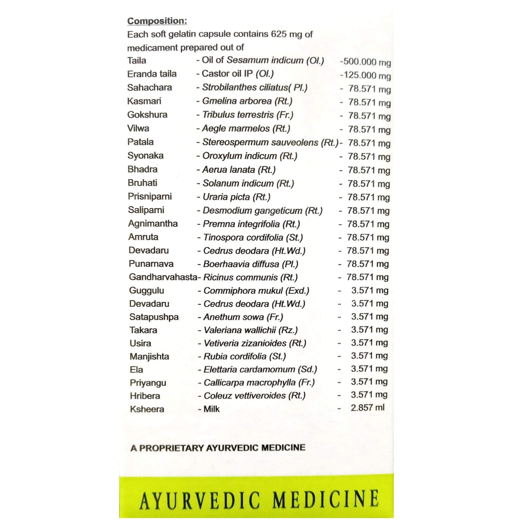 AVN Lumbaton Soft Gel Capsules (360 Capsules) (120 Capsules X 3). Indications: Lumbago Sciatica. Dosage: Curative: 2 Capsules 2-3 times daily after food; Preventive: 2 Capsules Once a day before food.