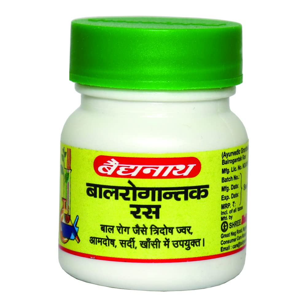 Baidyanath Balrogantak Ras-80 Tab (Pack Of 2). One of India;s most respected Companies Shree Baidyanath Ayurved Bhawan Pvt. Ltd. (Nagpur) popularly known as Baidyanath is the acknowledged leader of Ayurvedic know-how. Established in 1917 the Company has played a pioneering role in re-establishing ancient knowledge with modern research and manufacturing techniques. AYURVEDA is a 5000 year old Science of health care and herbal treatment. AYURVEDA is highly effective in common and complicated ailments assures long term relief and has no side effects. AYURVEDA is now backed by modern scientific research and technologies and provides its gentle healing touch to millions around the world.