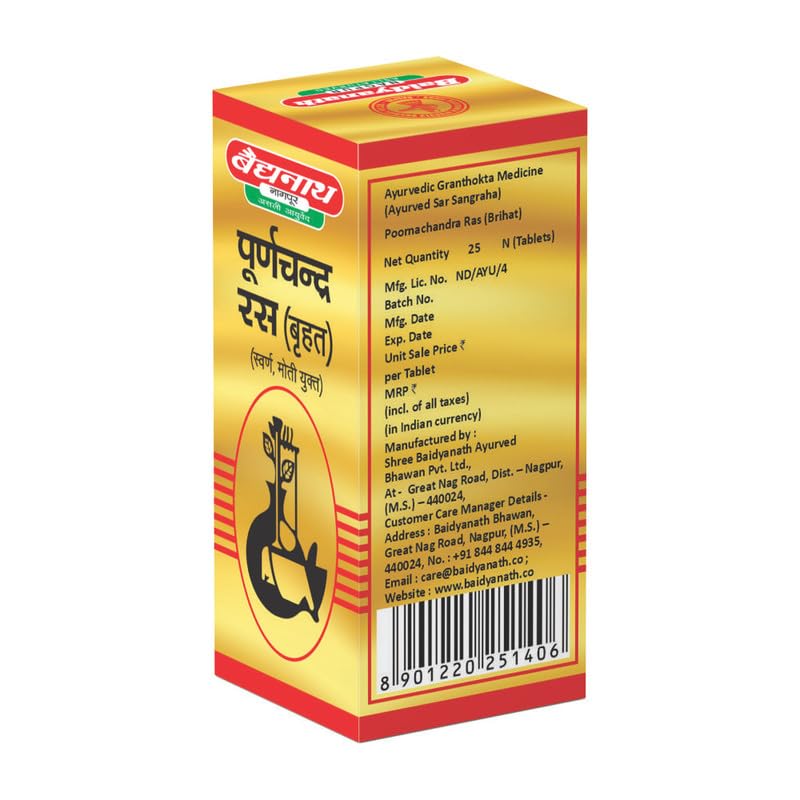 Baidyanath (Nagpur) Poornachandra Ras (Brihat) with Gold & Moti Tablet - 25 Tablets