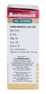 Information about Baidyanath (Jhansi) Sarwajwarhar Lauh (Vr.) with Gold Tablet Baidyanath (Jhansi) Sarwajwarhar Lauh (Vr.) with Gold Tablet is an herbomineral ayurvedic formulation that can deal with all types of fever. This medicine is prepared by taking an equal amount of twenty medicinal herbs and mixing them with lauh bhasma (equal to the cumulative amount of all herbs). It can also improve strength digestion and haemoglobin levels. Key Ingredients: lauh bhasma Chitrakmool Trifala Trikatu Vidanga Nagar motha Pipalamul Key Benefits: This formulation can improve haemoglobin levels and may reduce ventricular hypertrophy It can be beneficial in dealing with sarva jvara i.e. all types of fevers and jirnajvara (Chronic fever) It can improve digestive health and it is effective in dealing with diarrhoea It has antimicrobial and tonic properties that can reduce disease-causing bacteria This product may reduce cough gives strength and detoxifies the body Directions For Use: Use as directed on the label or as advised by your healthcare provider. Safety Information: Read the label carefully before use Do not exceed the recommended dosage Store in a cool and dry place away from direct sunlight Keep out of reach of children
