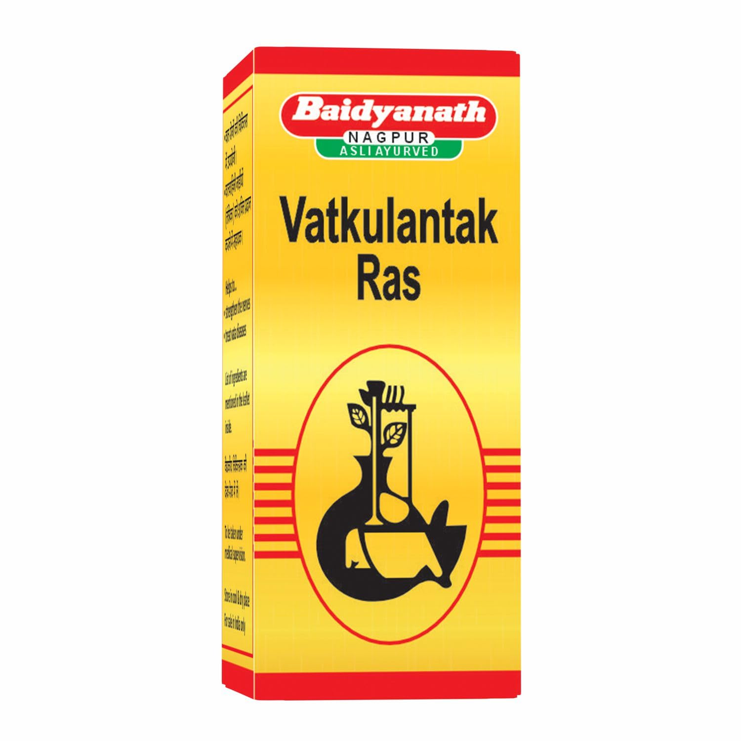 Baidyanath Vatakulantak Ras - 10 Tablets. One of Indiaâs most respected Companies Shree Baidyanath Ayurved Bhawan Pvt. Ltd. (Kolkata) popularly known as Baidyanath is the acknowledged leader of Ayurvedic know-how. Established in 1917 the Company has played a pioneering role in re-establishing ancient knowledge with modern research and manufacturing techniques. AYURVEDA is a 5000 year old Science of health care and herbal treatment. AYURVEDA is highly effective in common and complicated ailments assures long term relief and has no side effects. AYURVEDA is now backed by modern scientific research and technologies and provides its gentle healing touch to millions around the world.