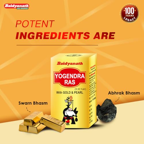 Baidyanath yogendra ras with gold and pearl can treat bleeding disorders sexual debilities and digestive problems. Yogendra ras with gold and pearl to be used in the treatment of neuromuscular conditions.