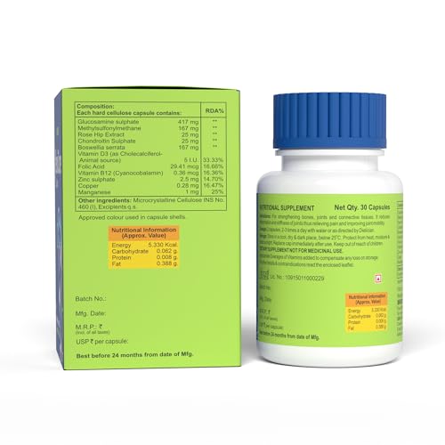 Bakson Flexicare Capsules For Strengthening Bones Joints & Connective Tissues | Reduces Inflammation Joint Stiffness Improves Joint Mobility & Relieves Pain For Men & Women (30 Capsules)