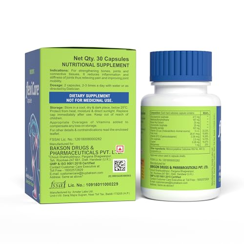 Bakson Flexicare Capsules For Strengthening Bones, Joints & Connective Tissues | Reduces Inflammation, Joint Stiffness, Improves Joint Mobility & Relieves Pain For Men & Women (30 Capsules)