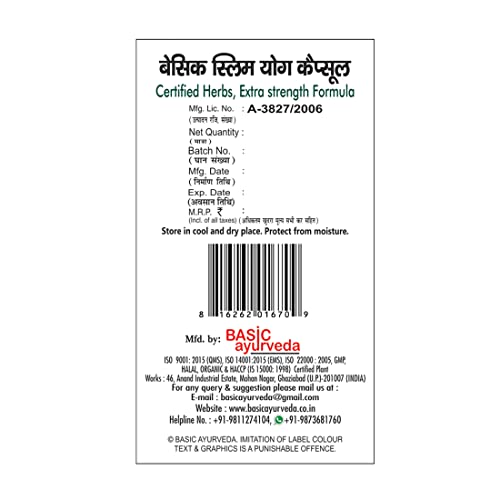 • Basic Ayurveda Basic Slim Yog Capsule is an ayurvedic formulation in capsules form. It contains excess importance by increasing plump metabolism and by breaking down deposited grease in the body.