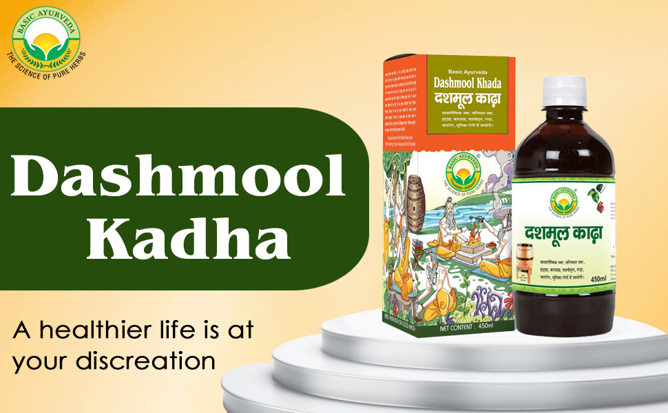 • Basic Ayurveda Dashmool Kadha is a liquid Ayurvedic tonic that is a combination of Dashmool with other herbs. It is used for the problems of Vata health heart health and throat health.