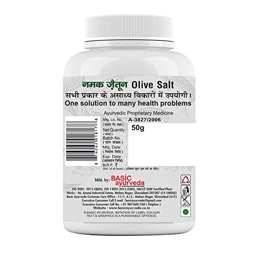 • Basic Ayurveda Olive Salt is an ideal natural ayurvedic mixture for various conditions such as blood sugar management digestion hypertension and cholesterol. Besides olives are a rich source of vitamin E iron copper and calcium.
