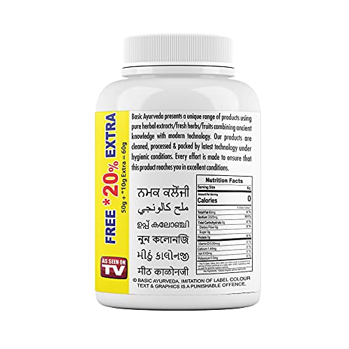 BASIC AYURVEDA Namak Kalonji (Black Cumin Salt) 60gm | Immunity Booster | Ayurvedic Supplements For Immune Suppport | A Powerful Blend Of Natural Ingredients | Certified Herbs, Extra Strength Formula