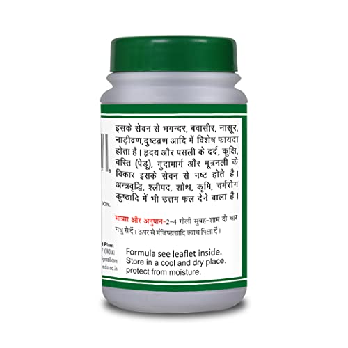 This product is made from herbs-based ingredients and hence is vegan. The recommended dosage of Saptavishanti Guggulu is 2-4 tablets twice a day. Take this medicine with honey followed by Manjishtadi kwath or take as directed by a physician.