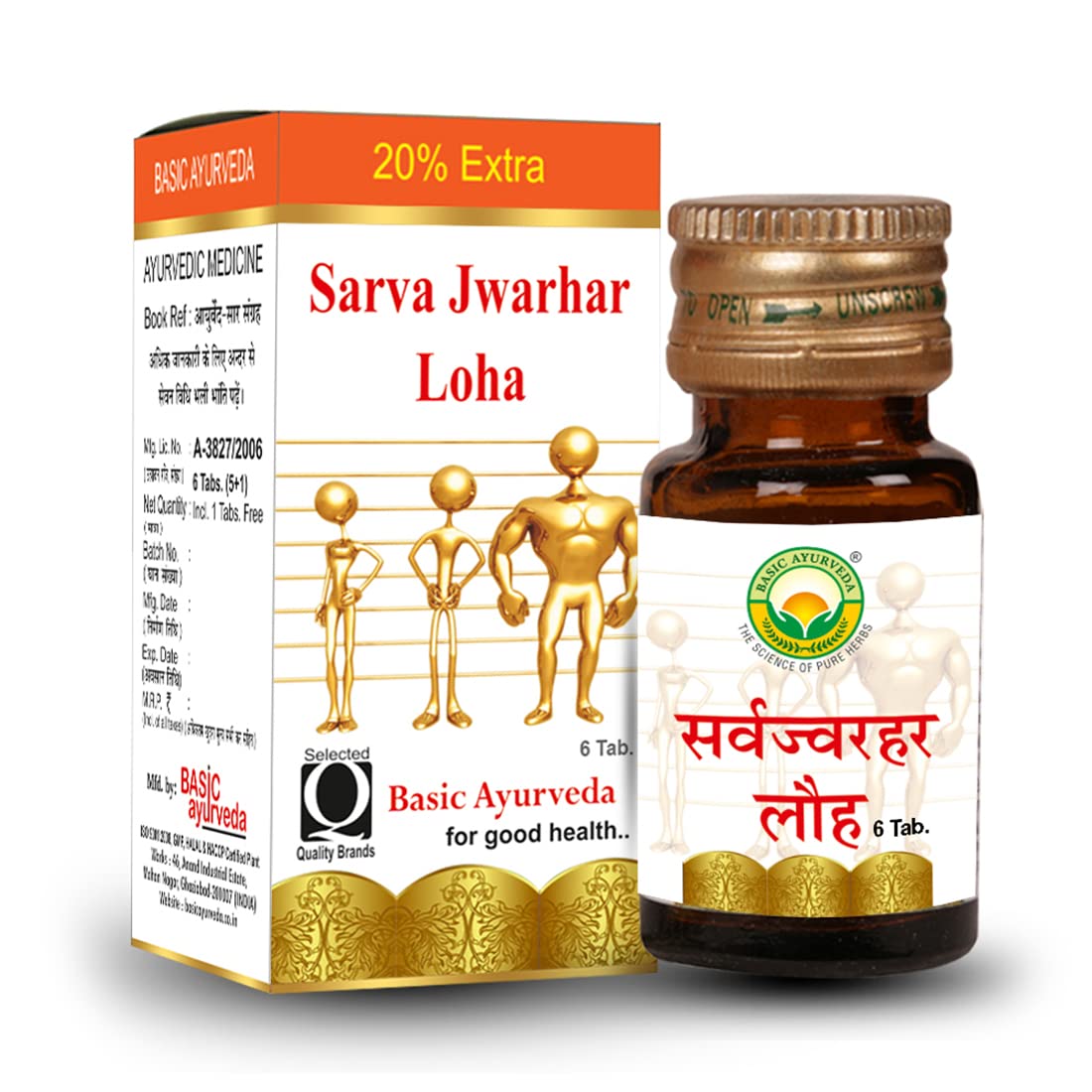 BASIC AYURVEDA Sarva Jwarhar Loha With Gold 6 Tablets Pack Of 3 | Certified Organic 100% Natural & Pure Tablet | Ayurvedic Supplements For Good Health | A Powerful Blend Of Natural Ingredients Extra Strength Formula