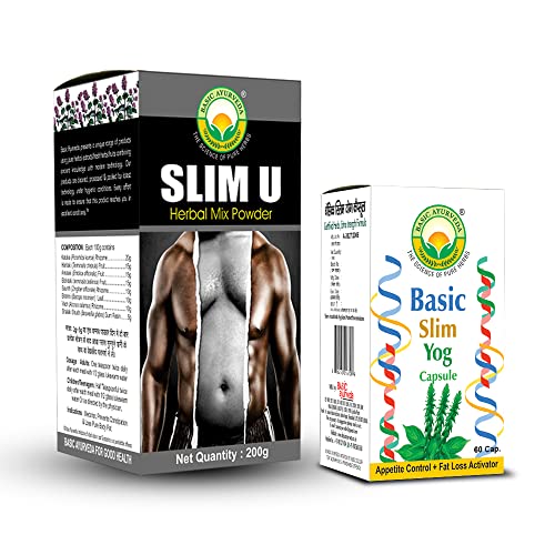 BASIC AYURVEDA Slim U Herbal Mix Powder 200 Gram With Slim Yog 60 Capsules Combo Pack |