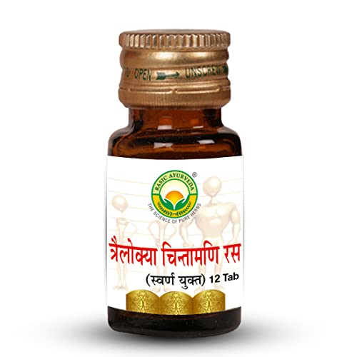 Basic Ayurveda Trailokya Chintamani Ras with Gold 12 Tablets | Ayurvedic Support for Strength & Nervous Health