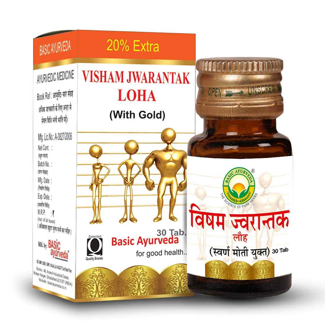 Basic Ayurveda Visham Jwarantak Loha with Gold 30 Tablets | Ayurvedic Remedy for General Health & Strength