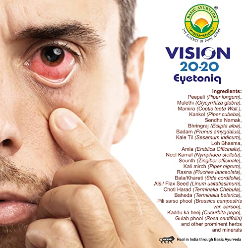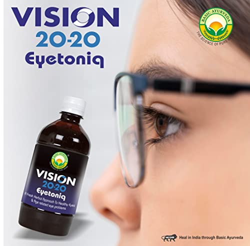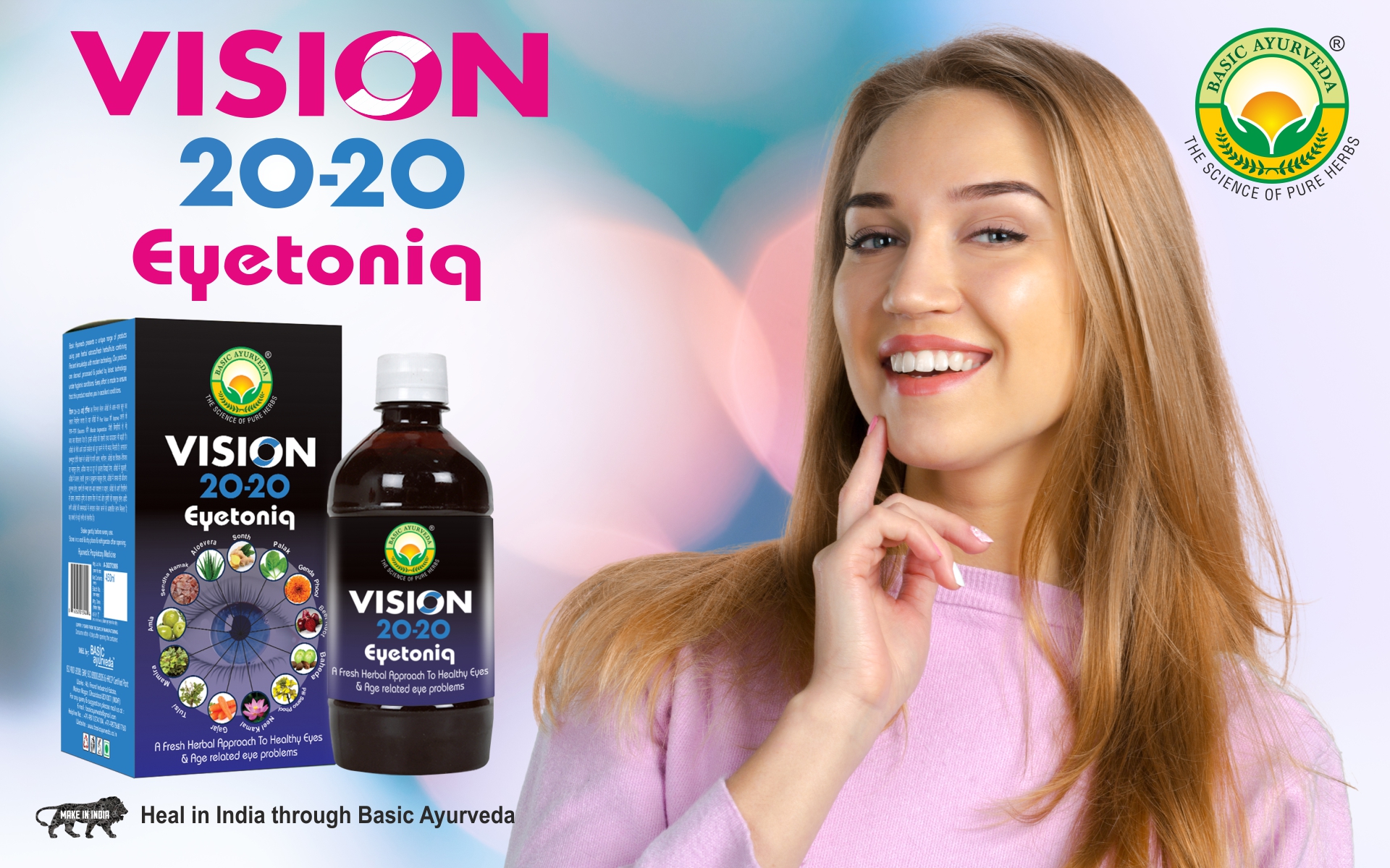 • Basic Ayurveda's Vision 20-20 Eyetoniq is an ideal ayurvedic eye tonic prepared from the extract of herbs that have been classically used for eye problems from ancient times as religious herbs.