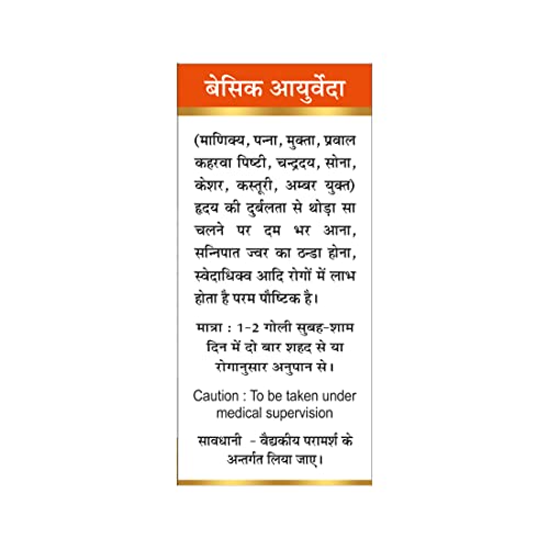 • Basic Ayurveda Yakuti Rasayan with Gold & Pearl is an ayurvedic formulation. That acts as general heart wellness temperature and excessive sweating. It may provide strength and nutrition to the heart and normalizes the heart rate.