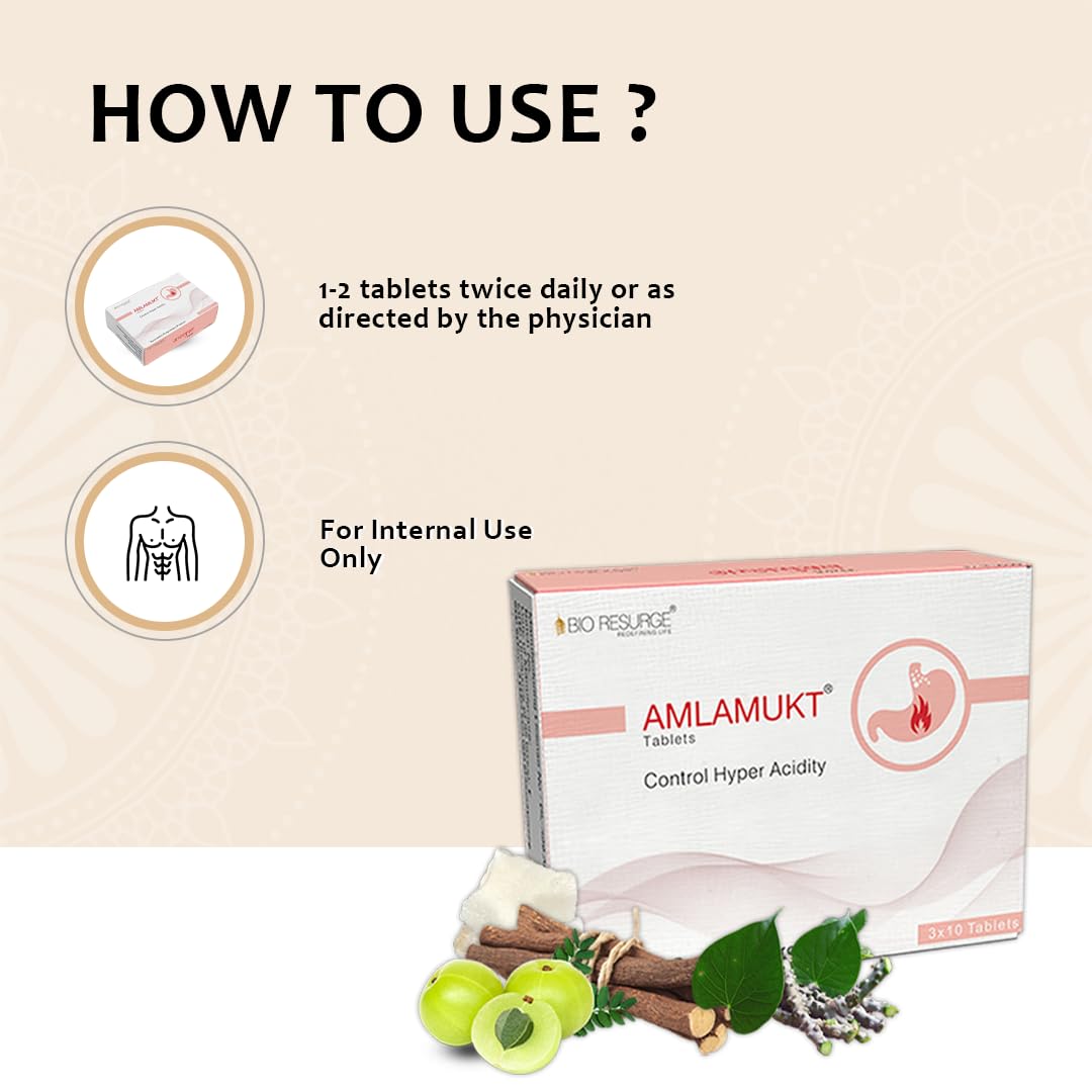 Bio Resurge Life AmlaMukt tablets Ayurvedic Medicine for Gas and Hyper Acidity100% NaturalAmlaMukt Tablet| Pack of 30