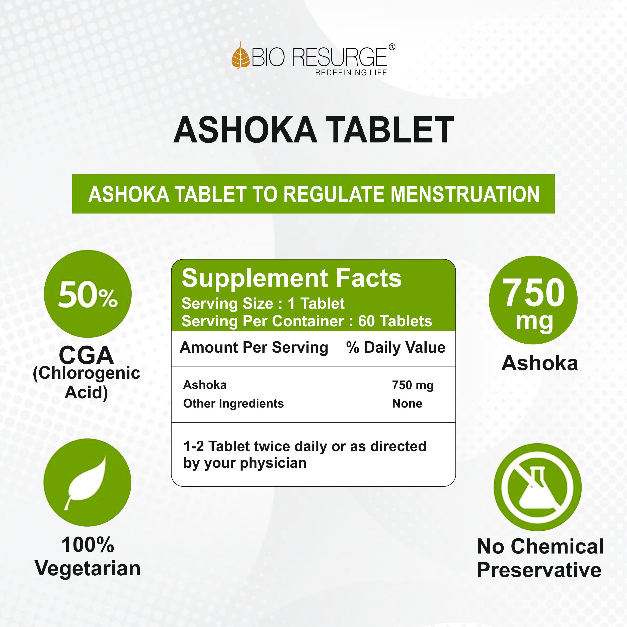 Bio Resurge Ashoka Tabs. - 750mg (60 Tabs.)