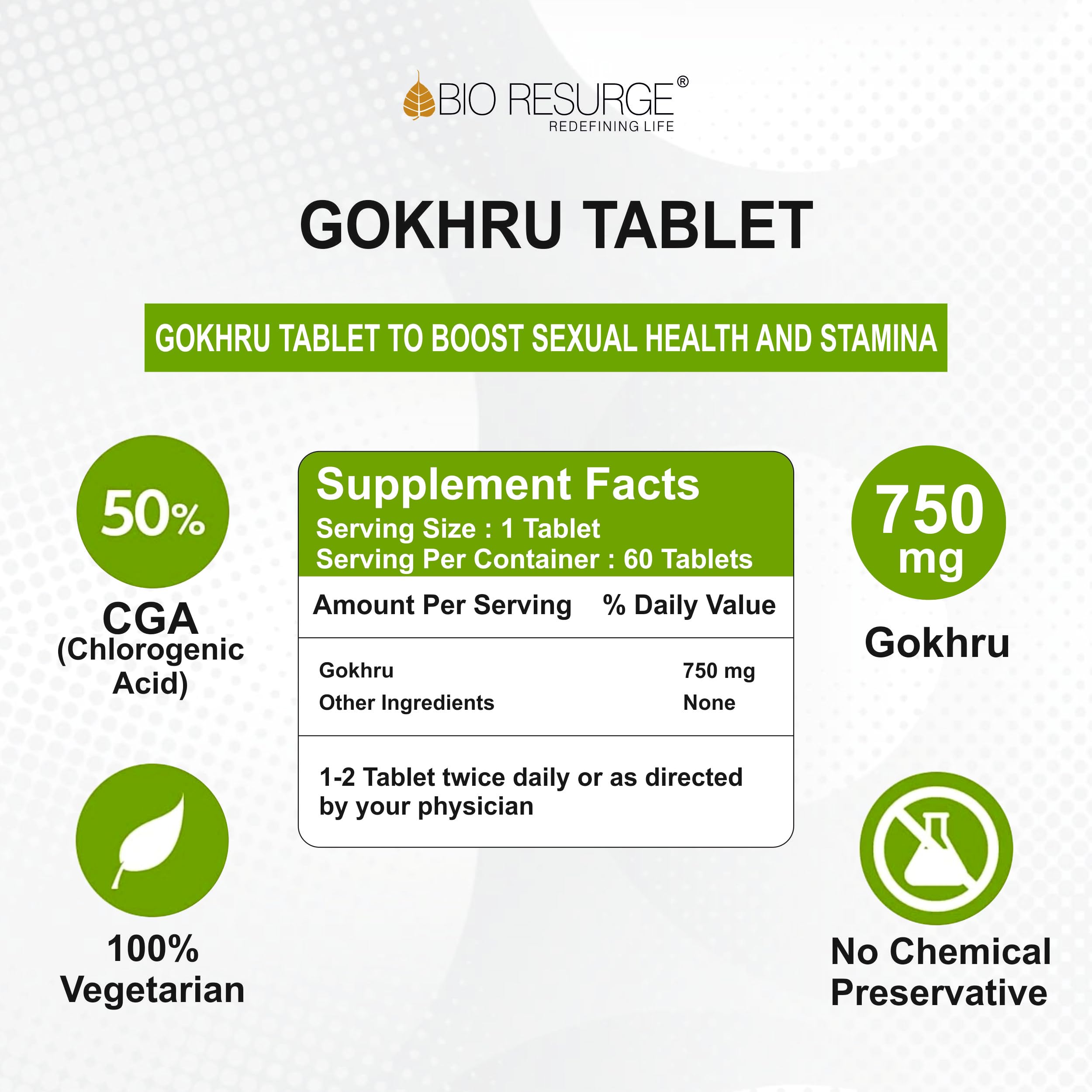 Bio Resurge Ayurvedic Medicine Gokhru Herbal Supplement Tablets - 750MG Pack of 1 (60 Tablet)