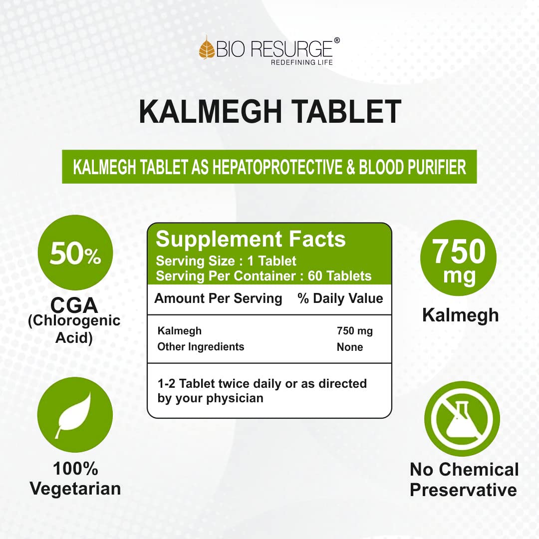 BIO RESURGE LIFE Kalmegh Tablet | Natural Liver Supplement | Liver Detox | Ayurvedic Medicine for Purify Liver Cells & reduce bad bacteria | Andrographis paniculata 750 mg each tablet (60 tablets)