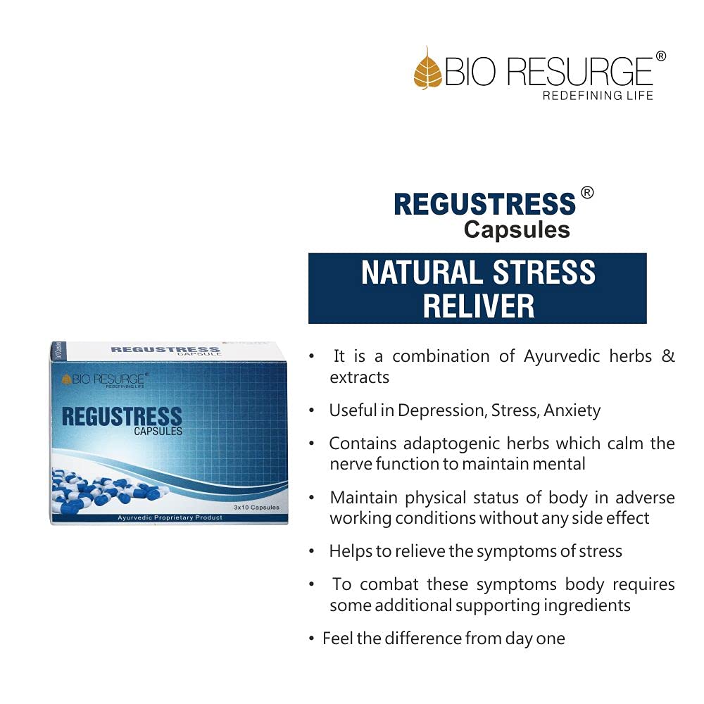 Bio Resurge Regustress â Ayurvedic Capsules for Stress & Anxiety Relief | Natural Mental Wellness Supplement (450 MG Pure Ayurveda Tablets
