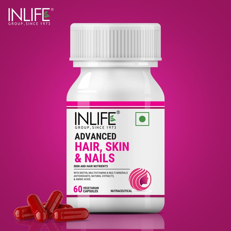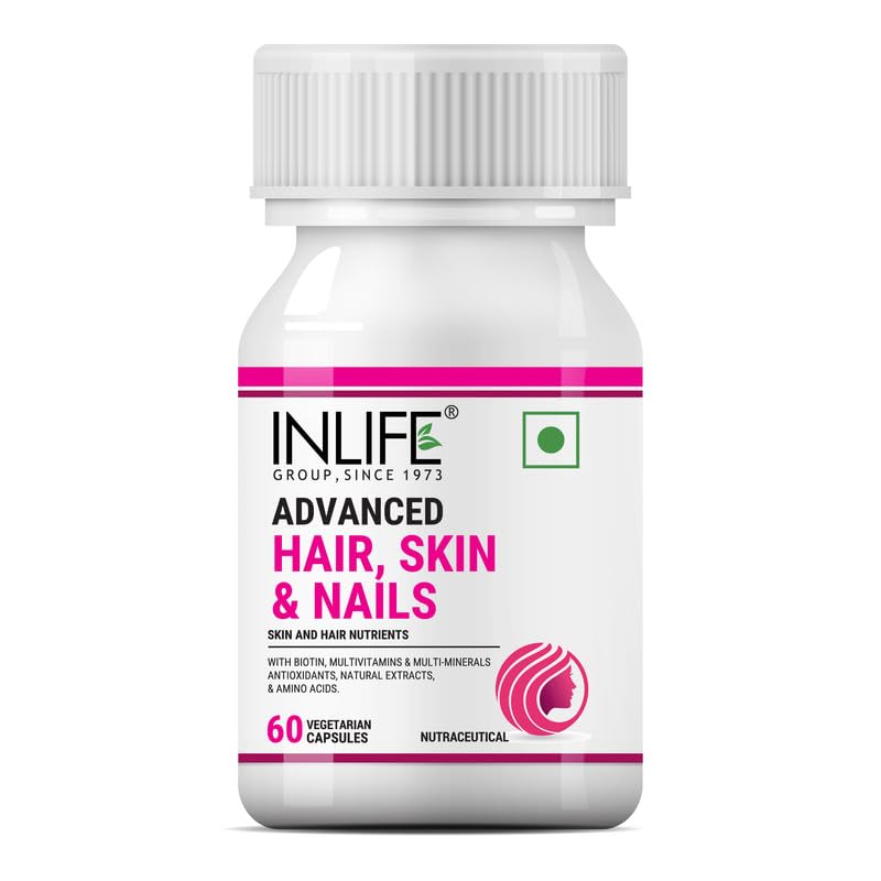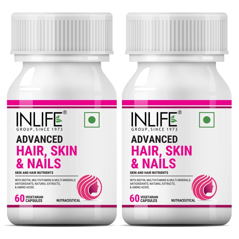 INLIFE Biotin Advanced Hair Skin & Nails Supplement with Multivitamin Minerals Amino Acids for Hair Care - 60 Vegetarian Capsules (Pack of 2)